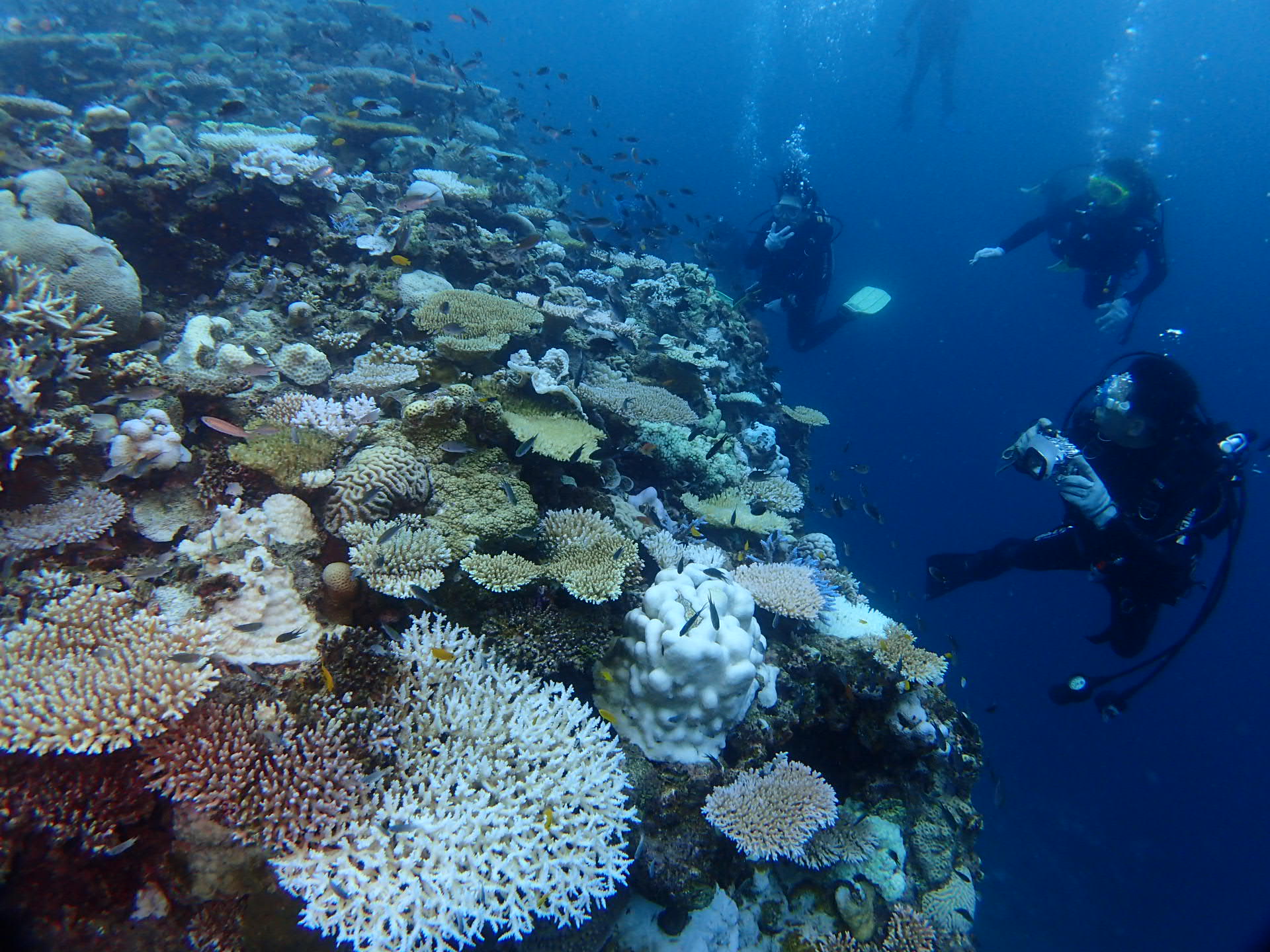 サンゴはたくさん~ですが、やはり白化が凄いですね・・