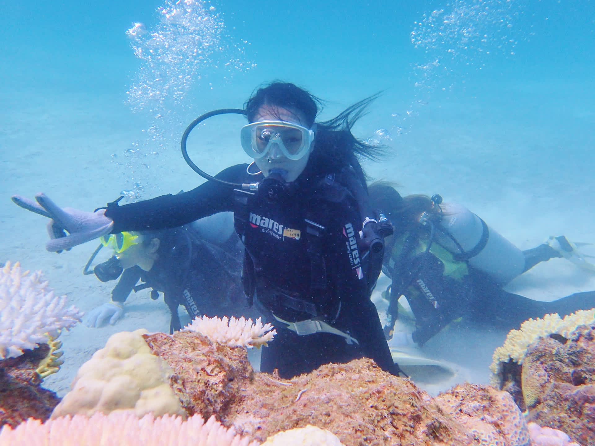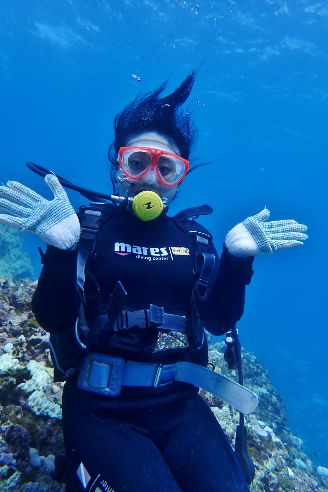 海中で出迎えてくれた魚や珊瑚を前にすると、すぐに魅了されちゃってましたね
