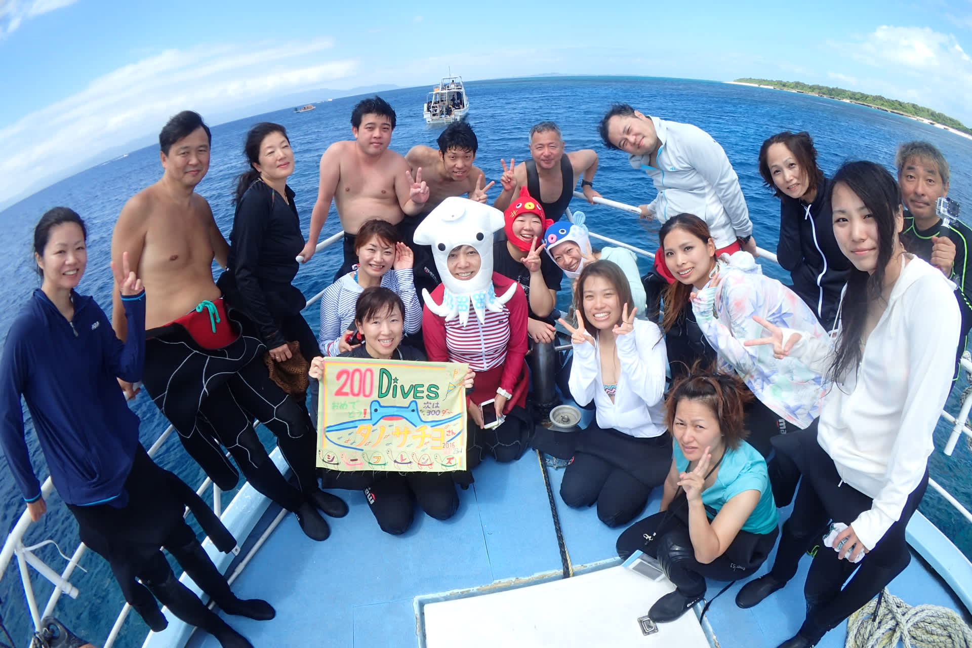 ここでヤマダさん200本記念ダイブ!!フラッグでお祝いでーす ワーワーパチパチ🌼\(゜V\)(/ω゜)/🌼