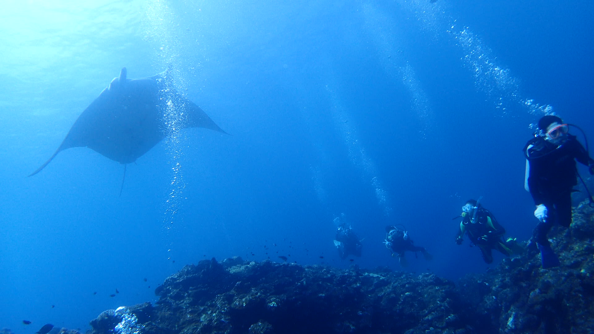午後はスノーケルとダイビングにわかれ、石垣のスターである、マンタにご挨拶ぅ!!