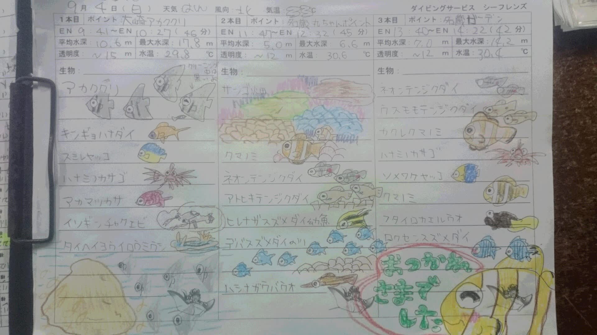 コンディション:北の風 気温33℃ 水温30℃ 透明度~20m