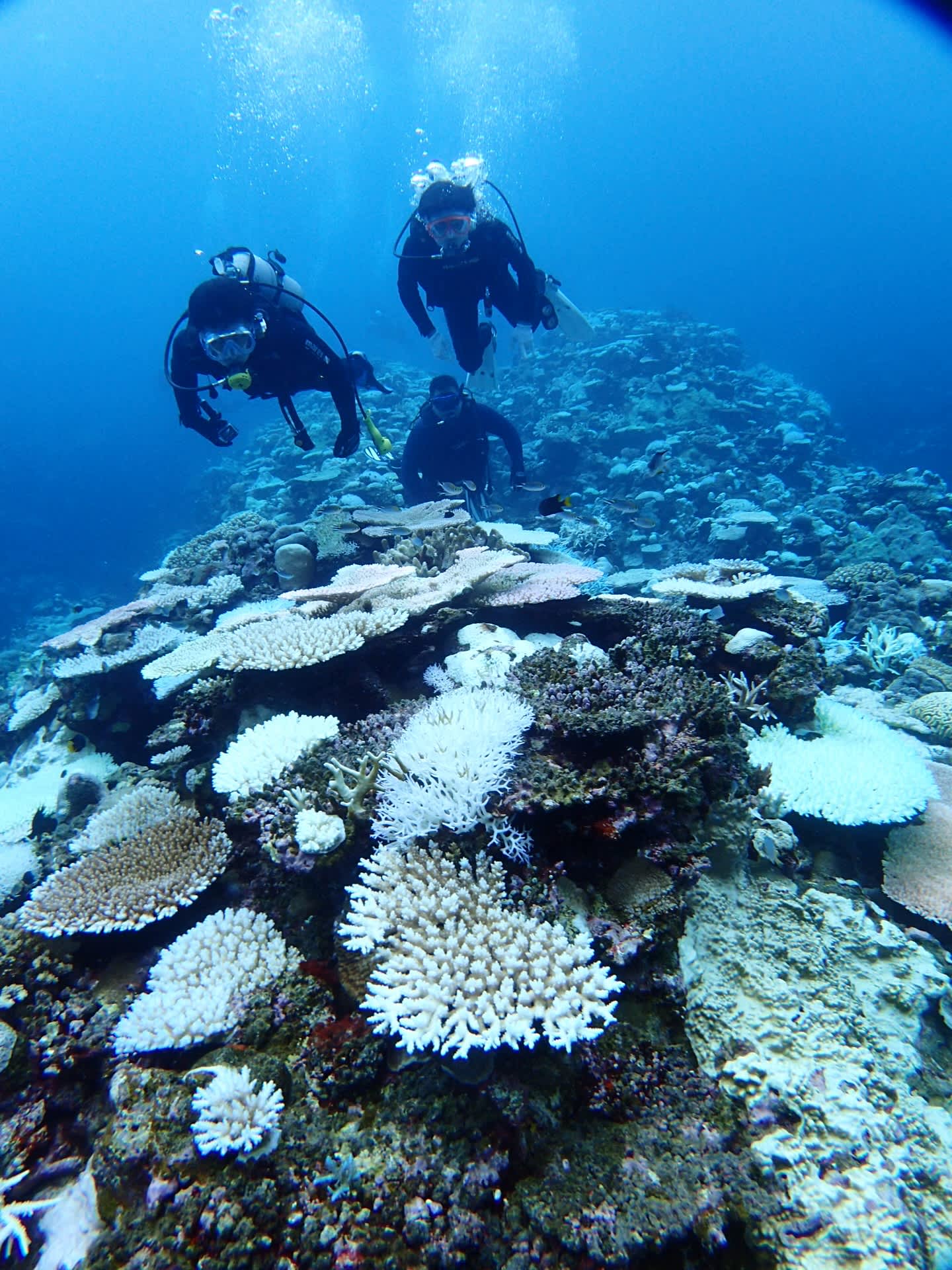 カヤマ周辺は、サンゴが8割りがた白色になってますが、