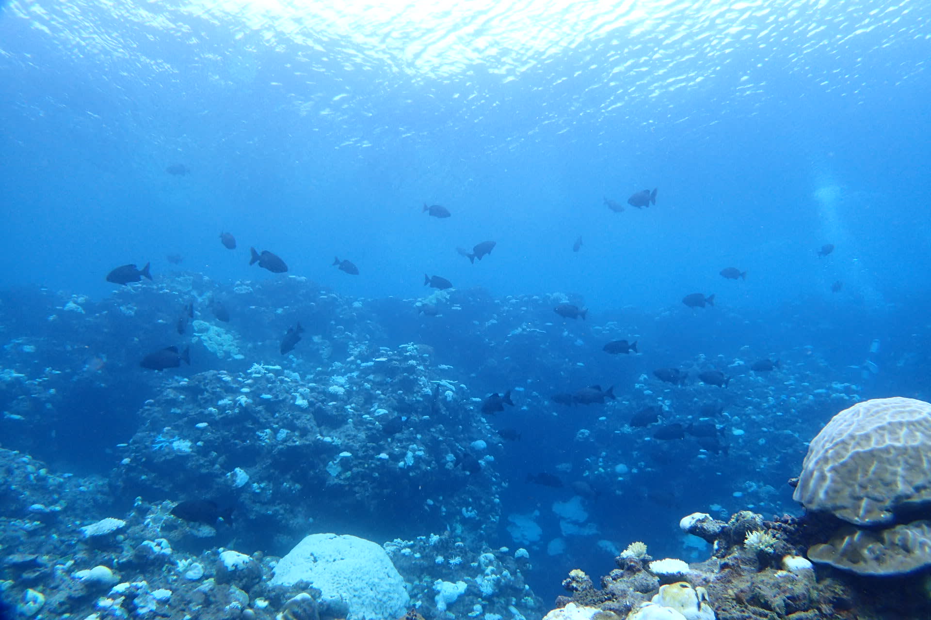 スノーケルで見渡す青い世界は、海の広さがびしっと伝わって来ますね~