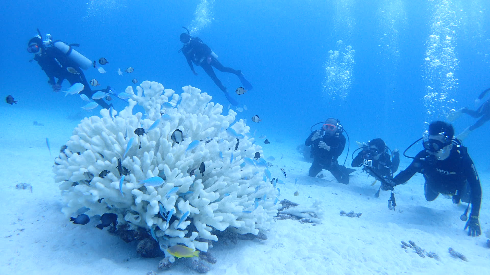 サンゴが白色から茶色っぽくなってますね・・・