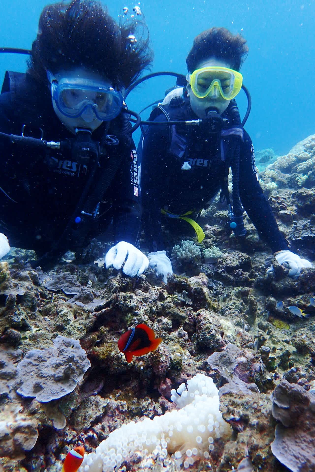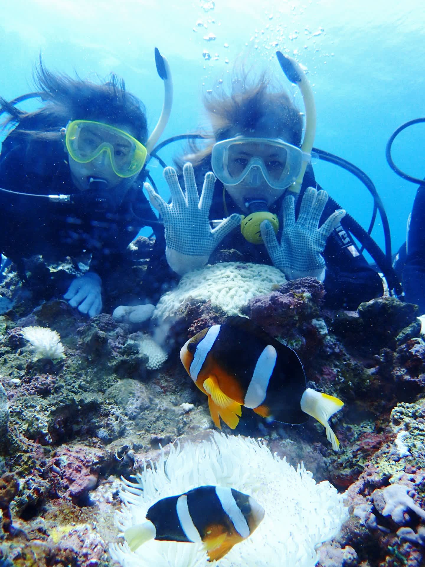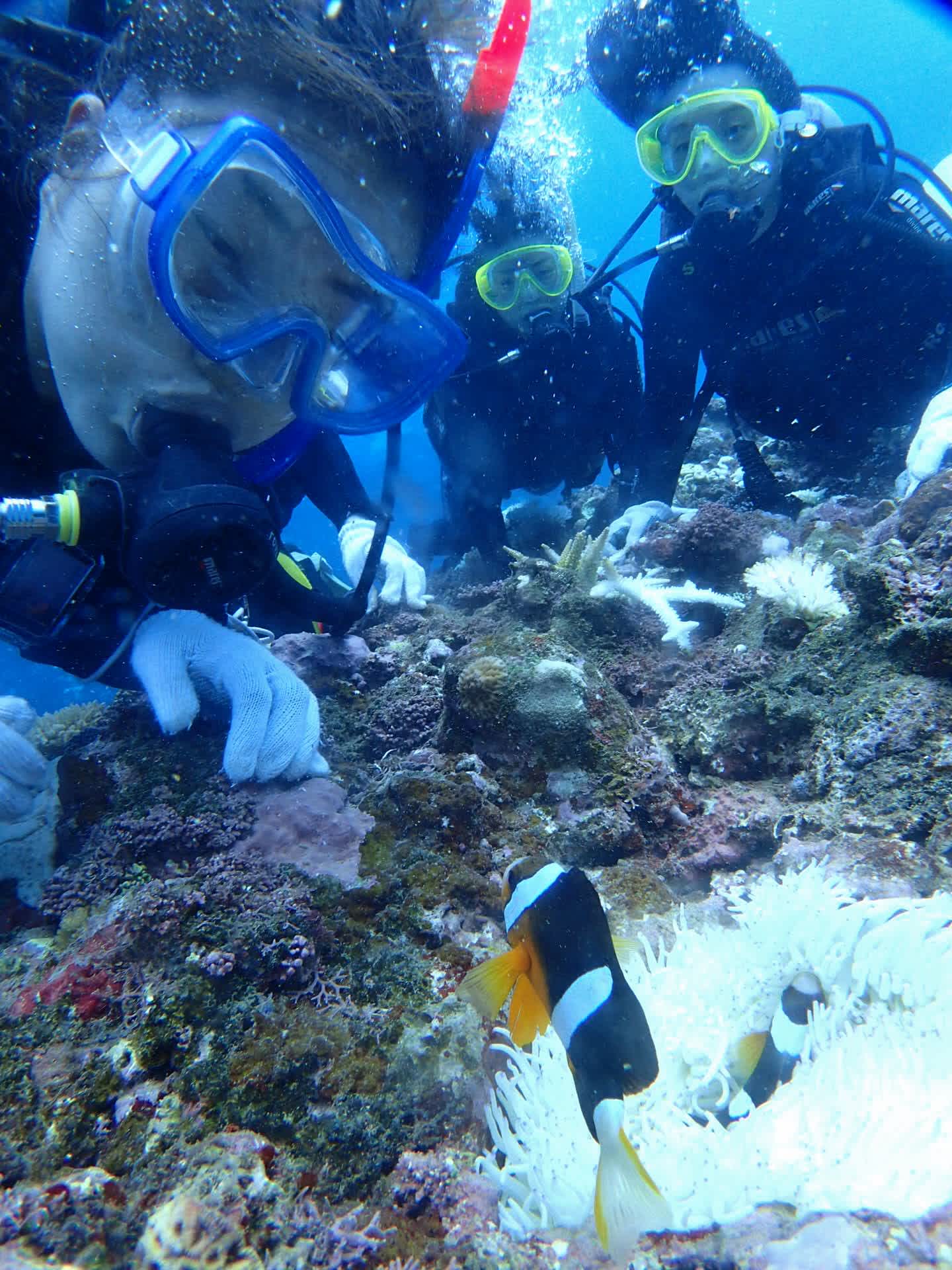 可愛すぎるクマノミファミリーとにらめっこしたり、