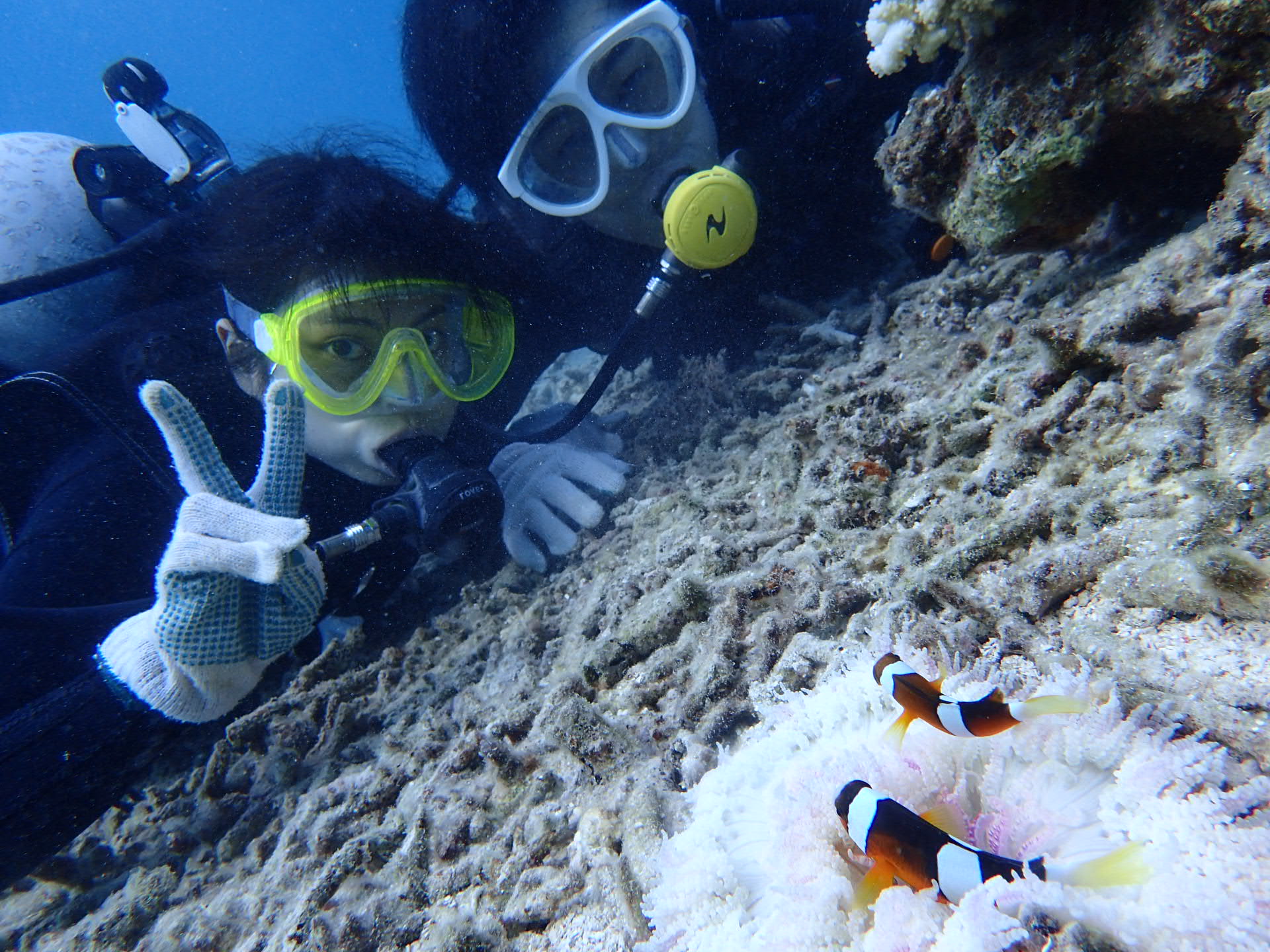 珊瑚エリアなので魚の数も多く、とくにスズメダイはパーティー状態♪