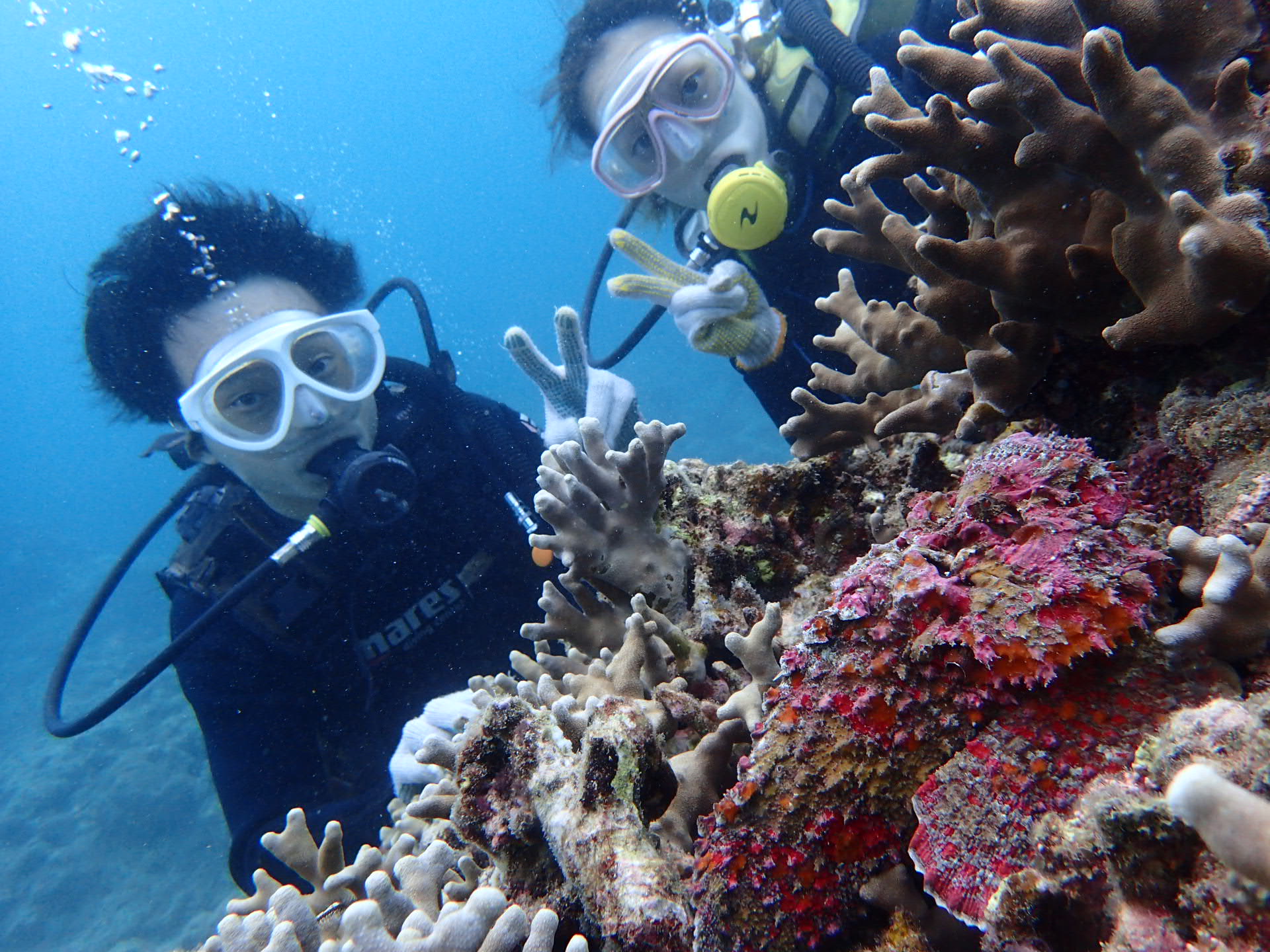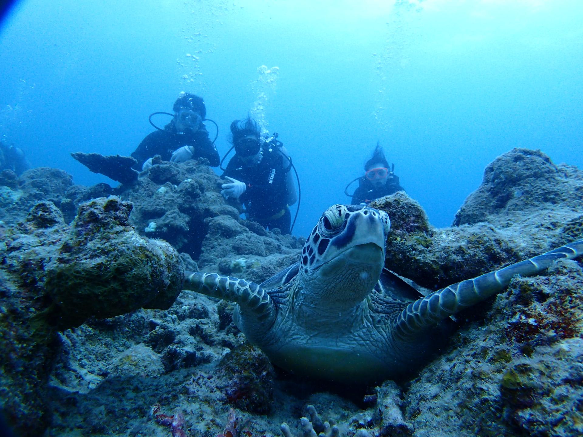 コンディション:南から東、北の風 気温30℃ 水温28℃ 透明度~20m