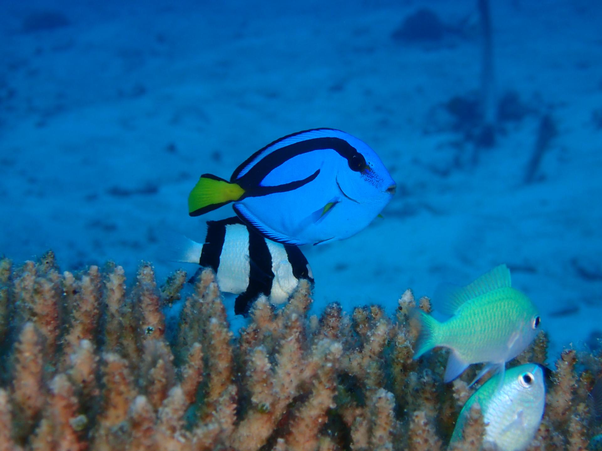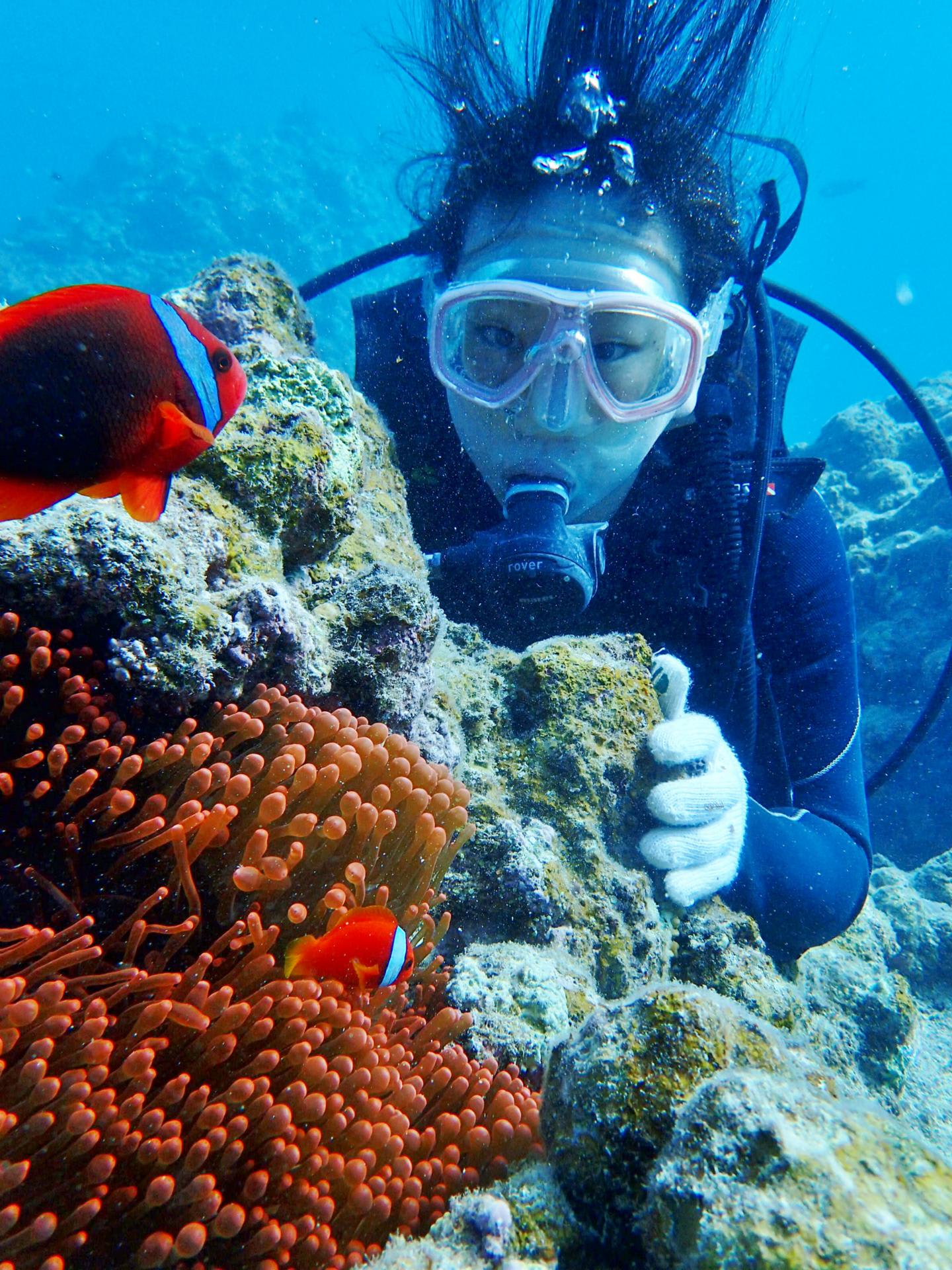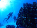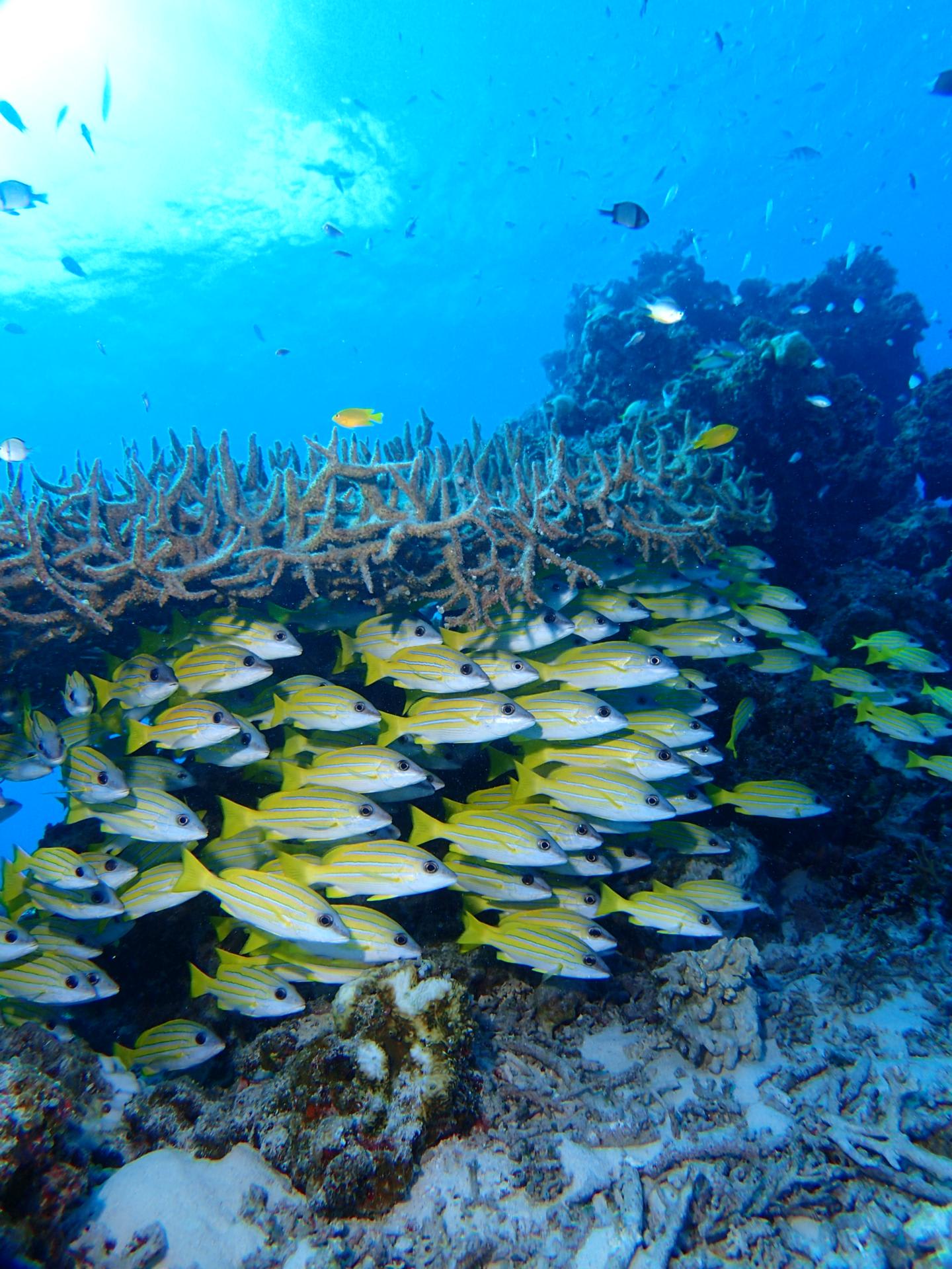スズメダイもたくさん住み着いているので、一緒になって泳げて気持ちがいいですね。