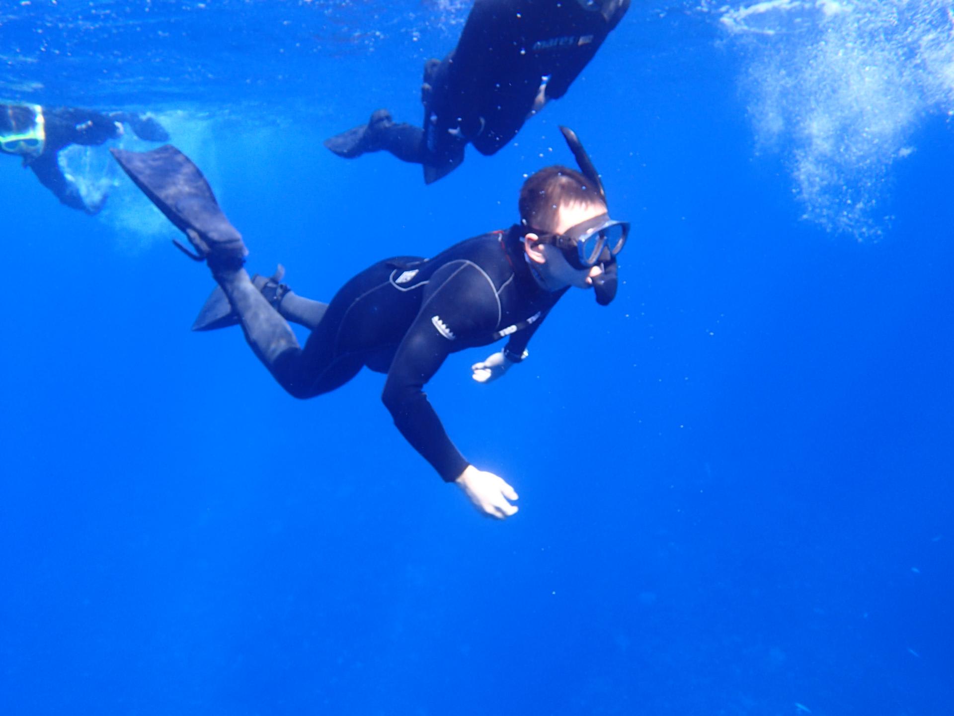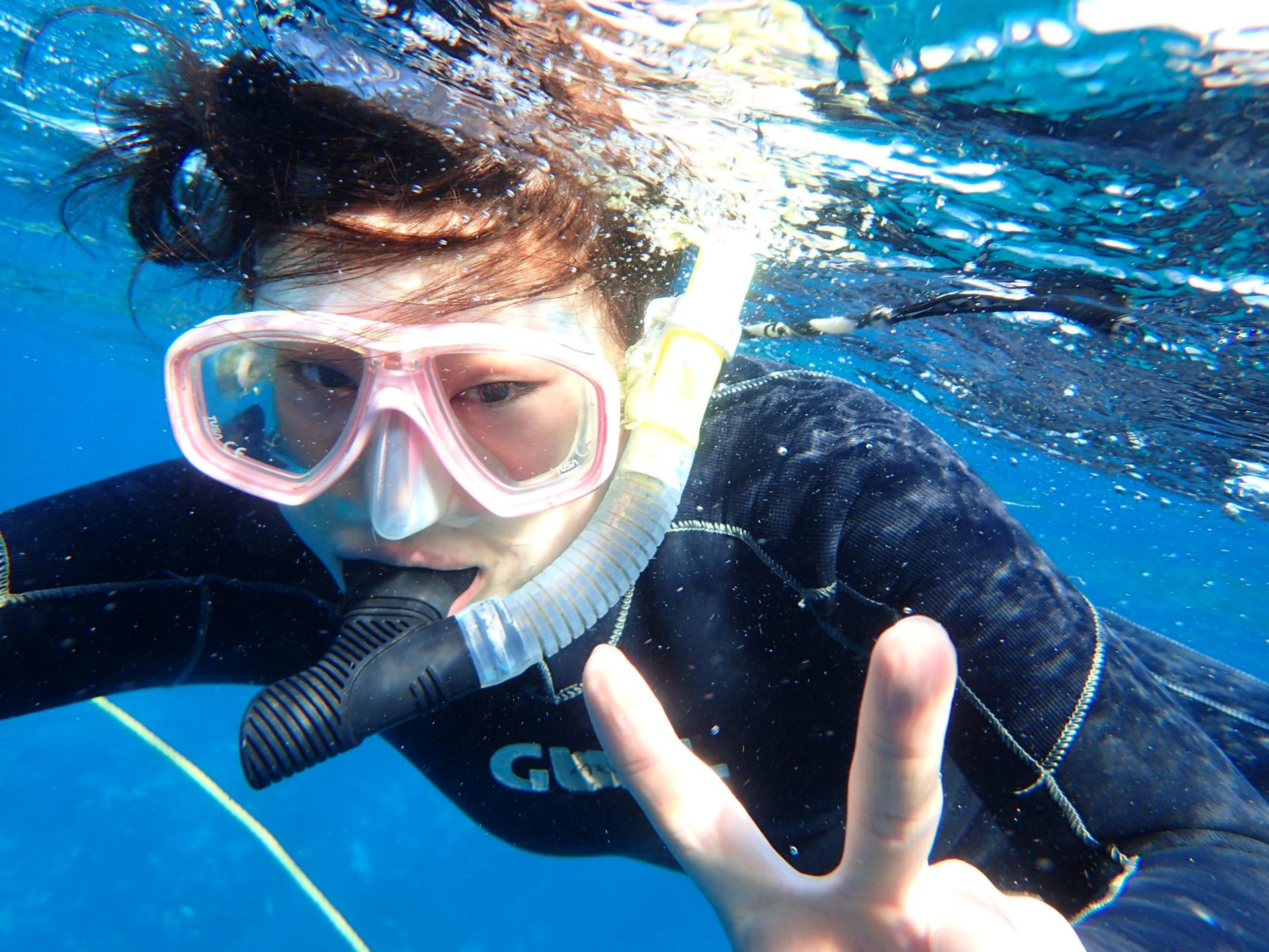 スノーケルも青い・・ 素潜りも上手~~すいすい♫