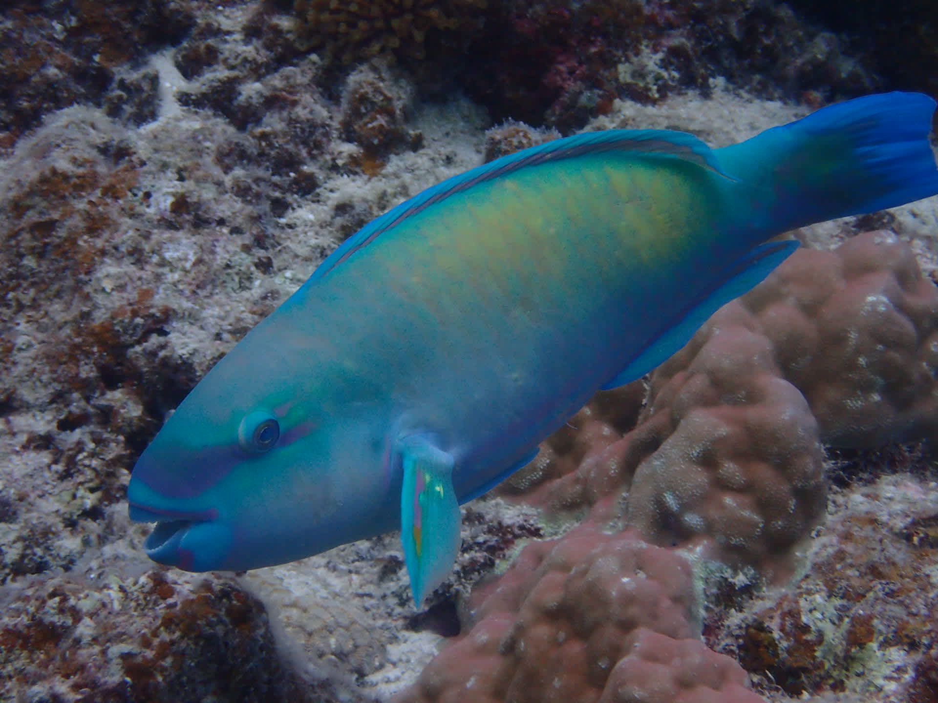 岸際は濁りあり でしたが、リーフ際までいくとこれまた青い!!