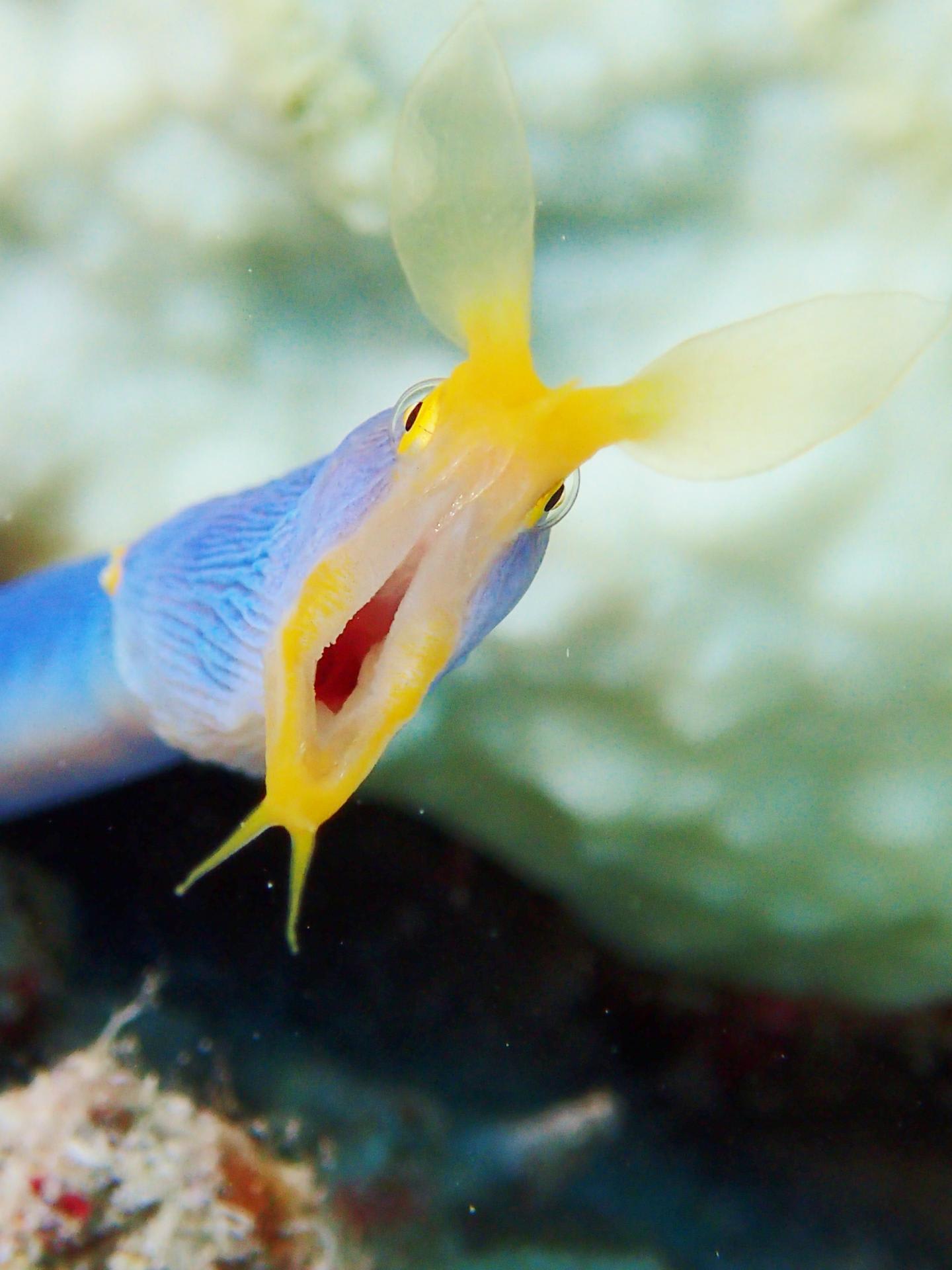 ヤッコエイのカップルが砂地で遊んでいたり、ニッコリギンポちゃん♥だったりと