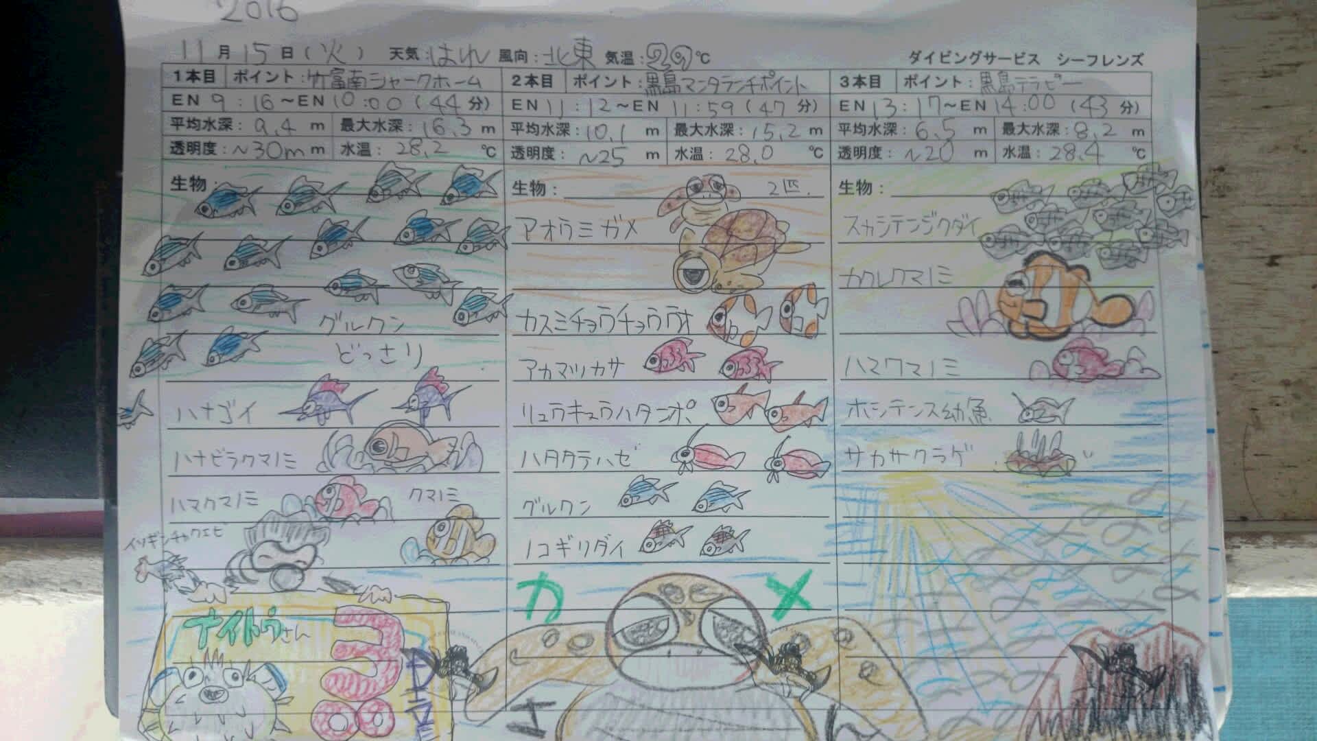 コンディション:南東の風 後 北東の風 気温28℃ 水温27℃ 透明度~20m