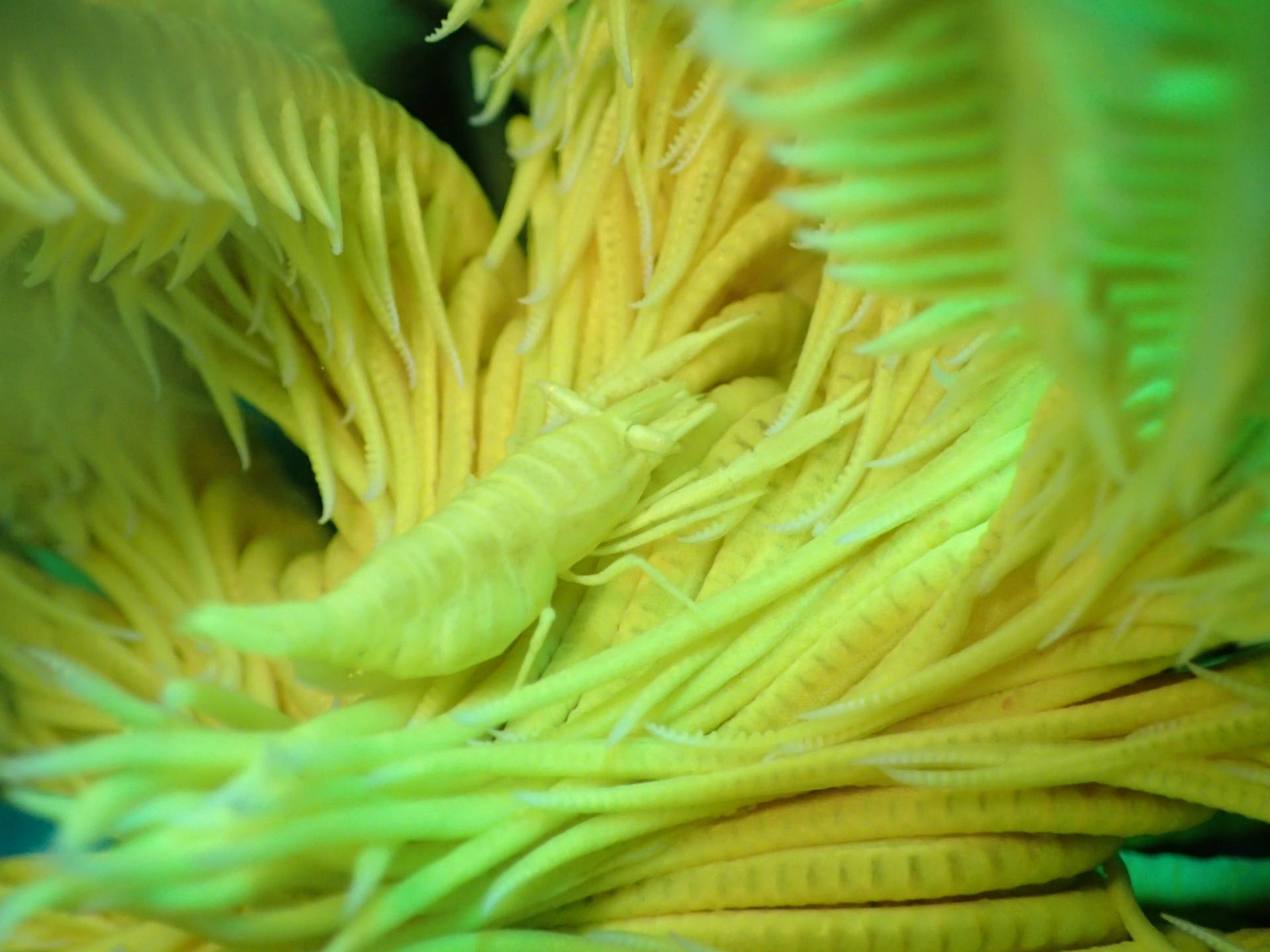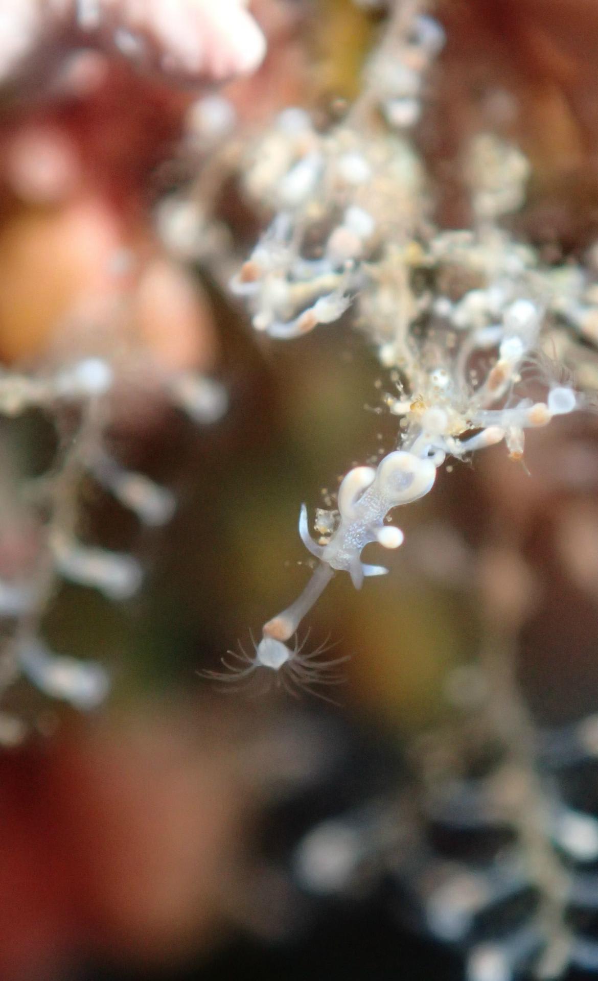 ハナヒゲちゃんは、鮮やかな色をした華奢なボディーで、主食はプランクトンと、少食なんです。