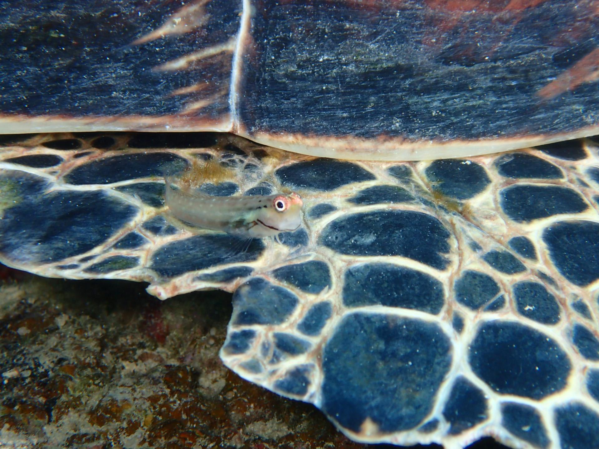 後ろ足の上でイシガキカエルウオが日向ぼっこ&甲羅のコケをむしゃむしゃしていて和みます~(*^¬^*)