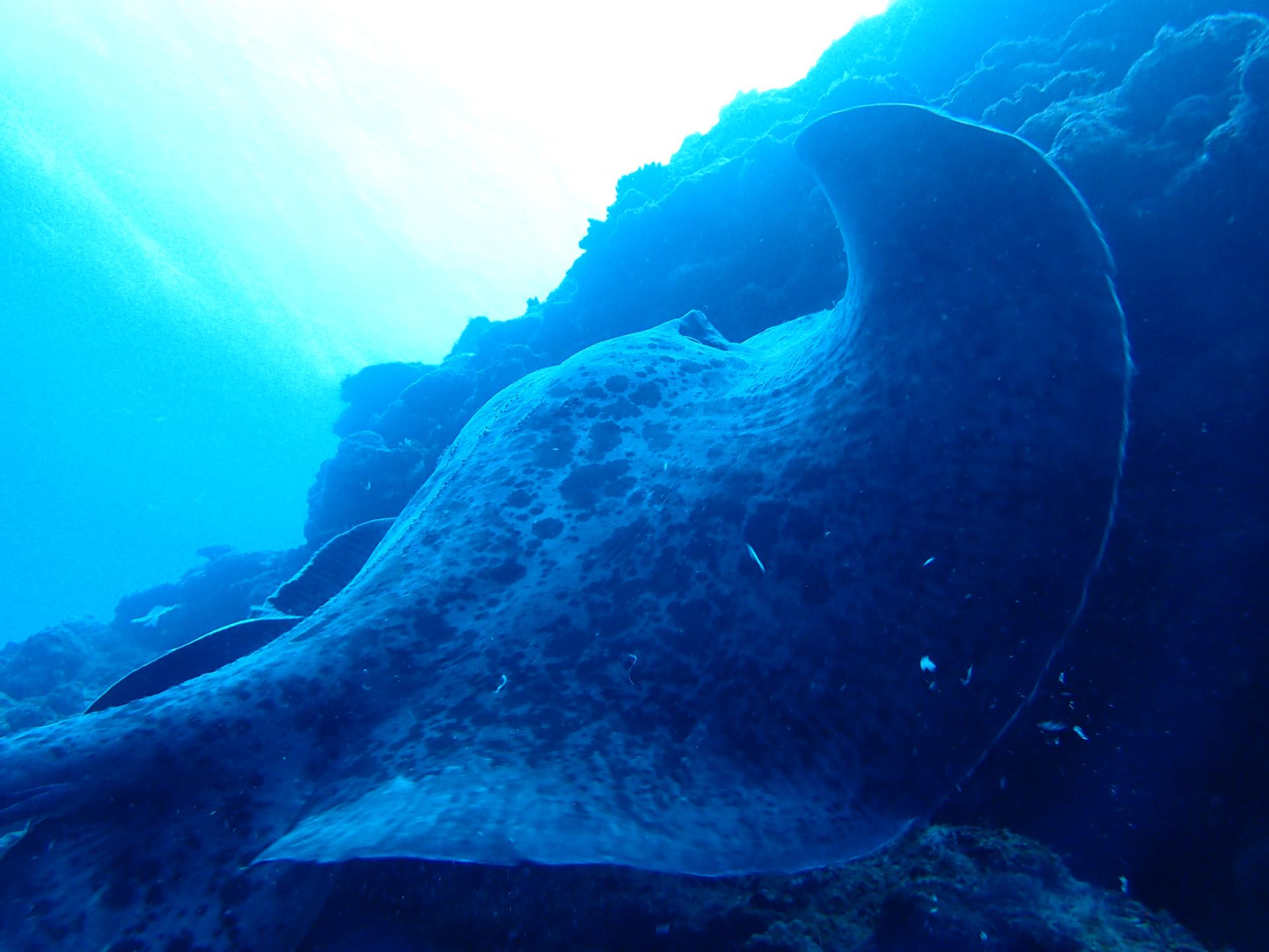 ハマクマノミ団地の下に。大きなおおき~なマダラエイがうごうごうごめいていましたよ!!