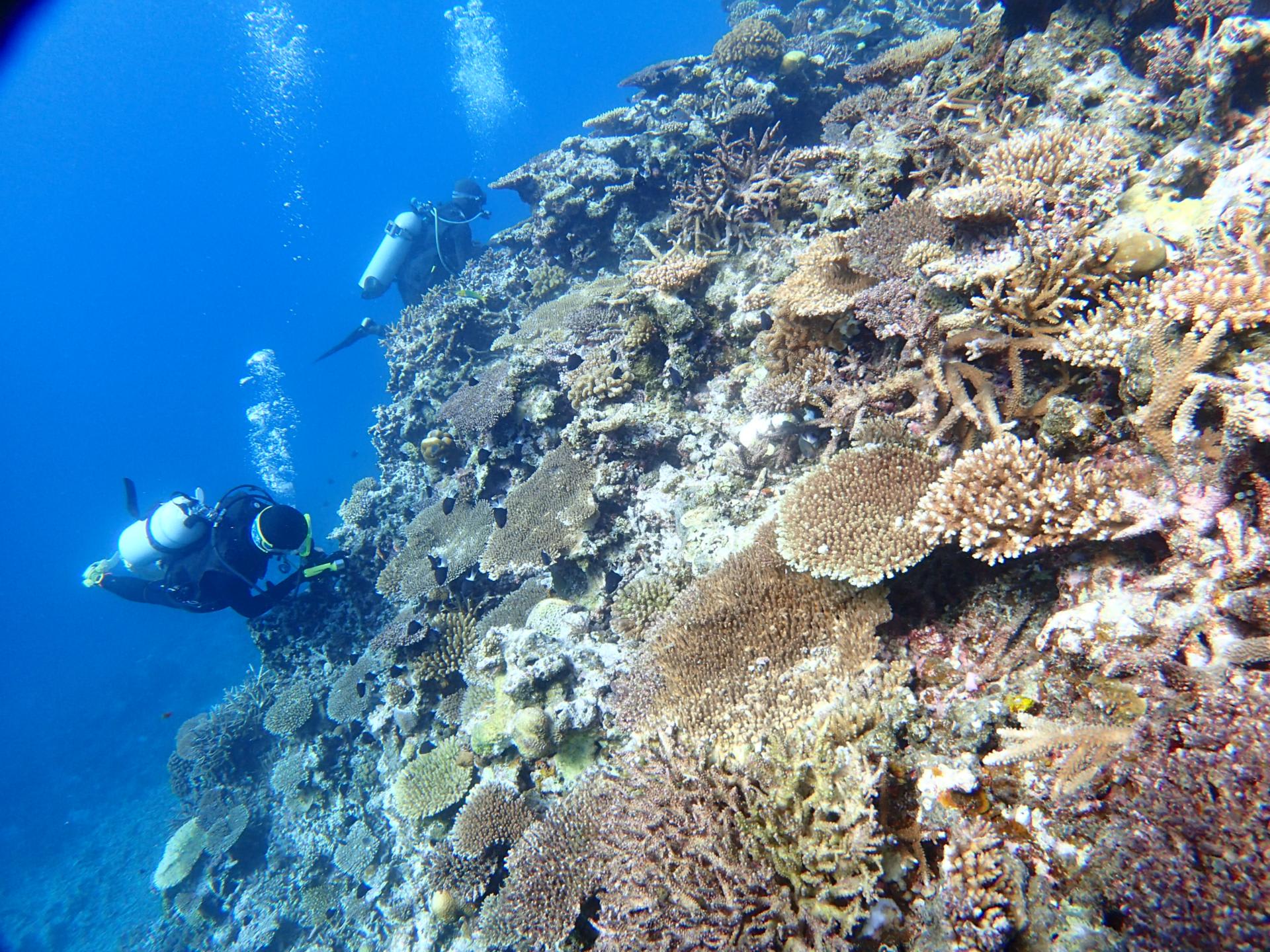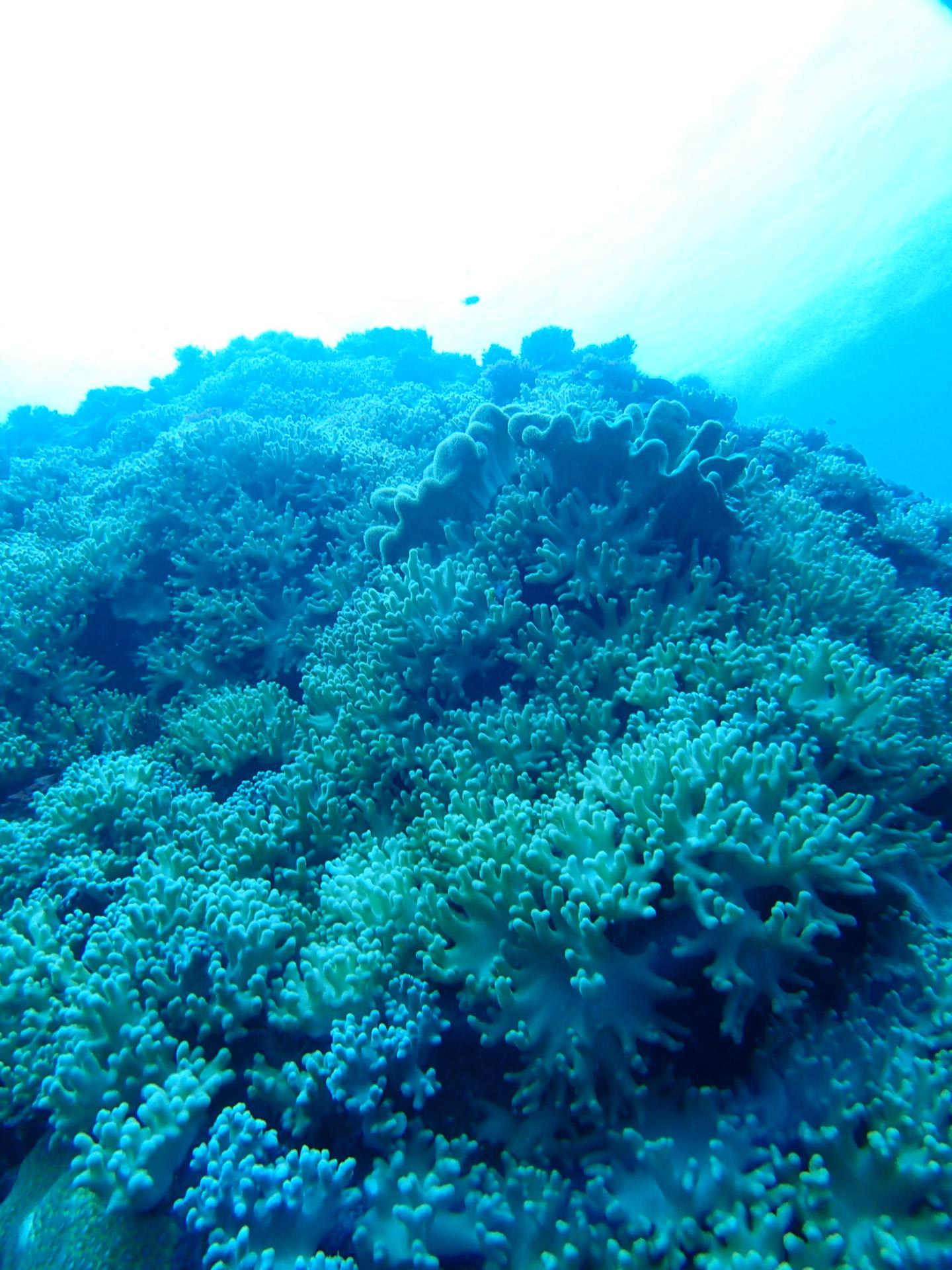 浅いリーフの上はソフトコーラルが波で揺らめき綺麗でした
