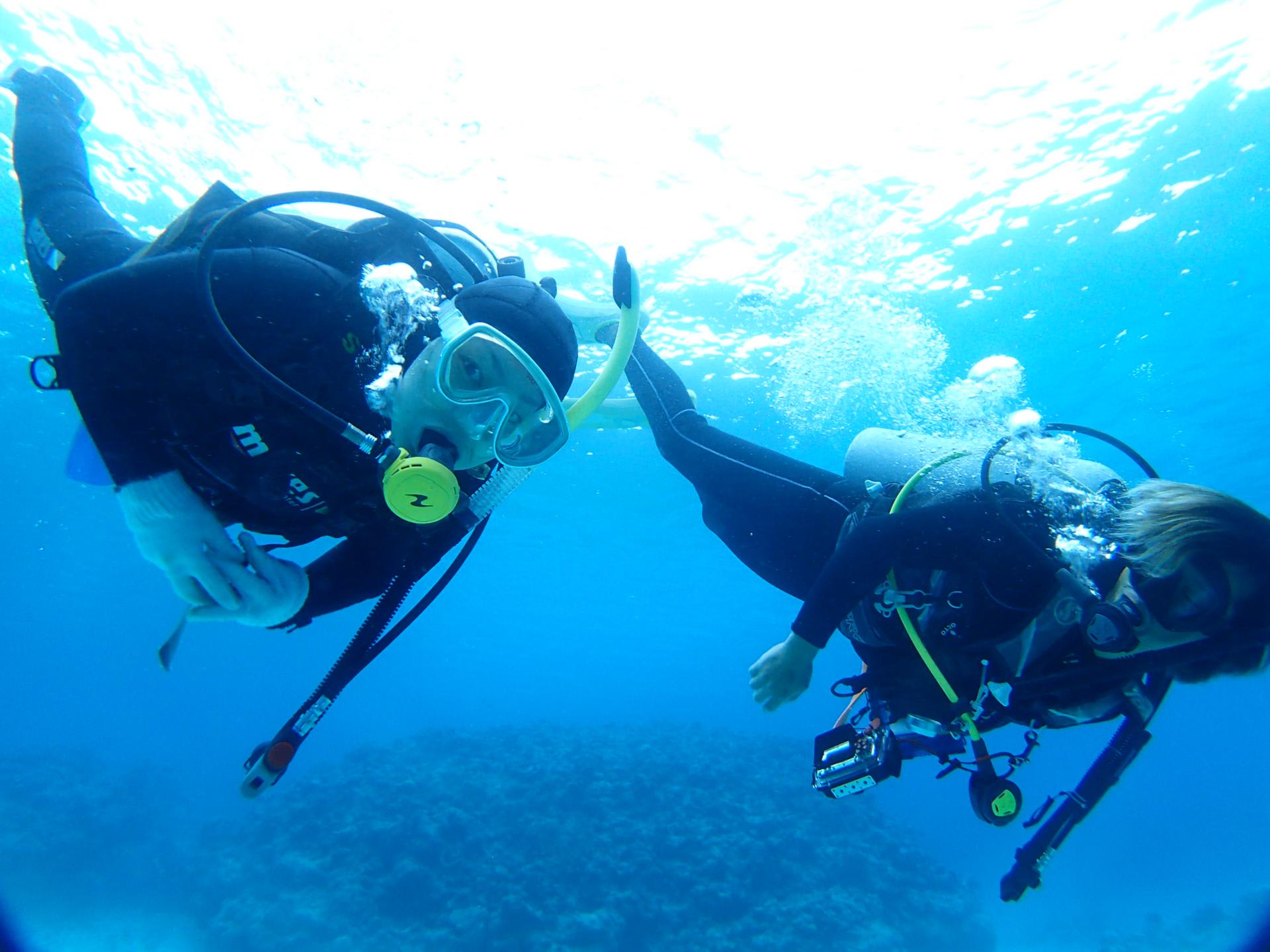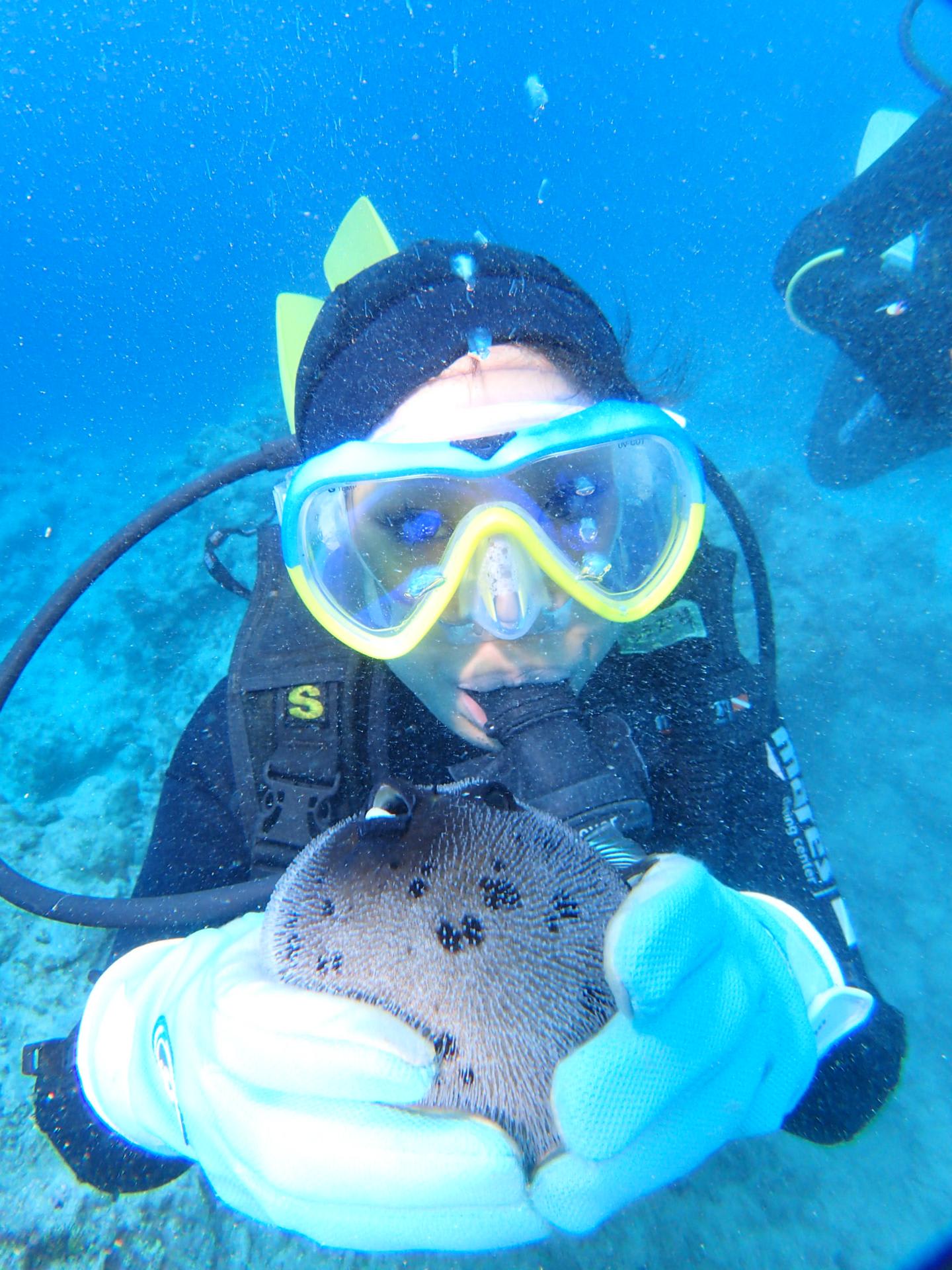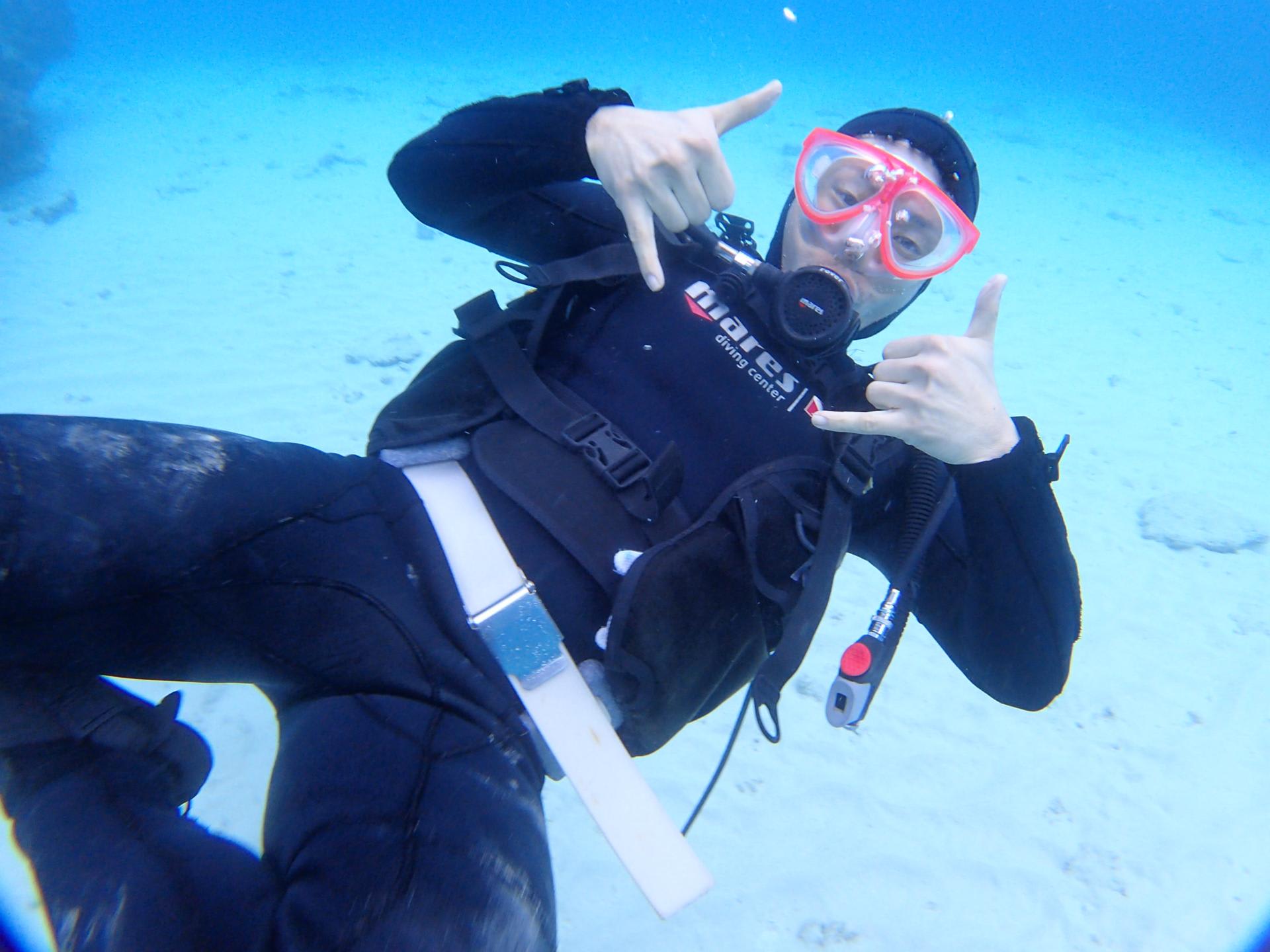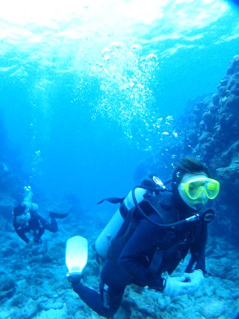 ダイビングのレクチャーもしっかりこなし、いざ!水中へぶくぶく~.。o○