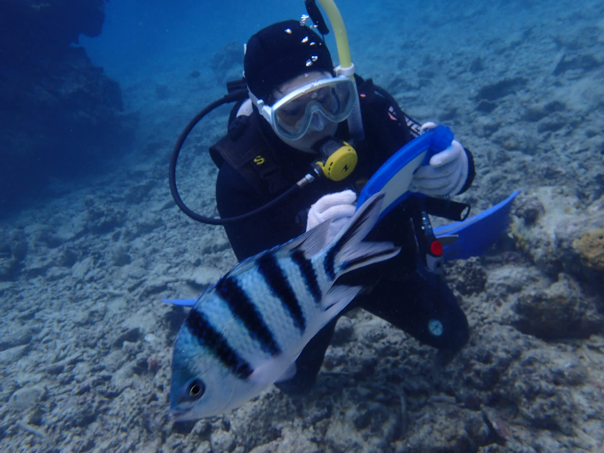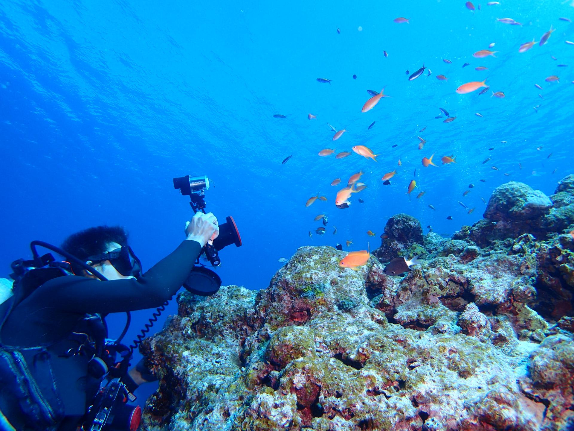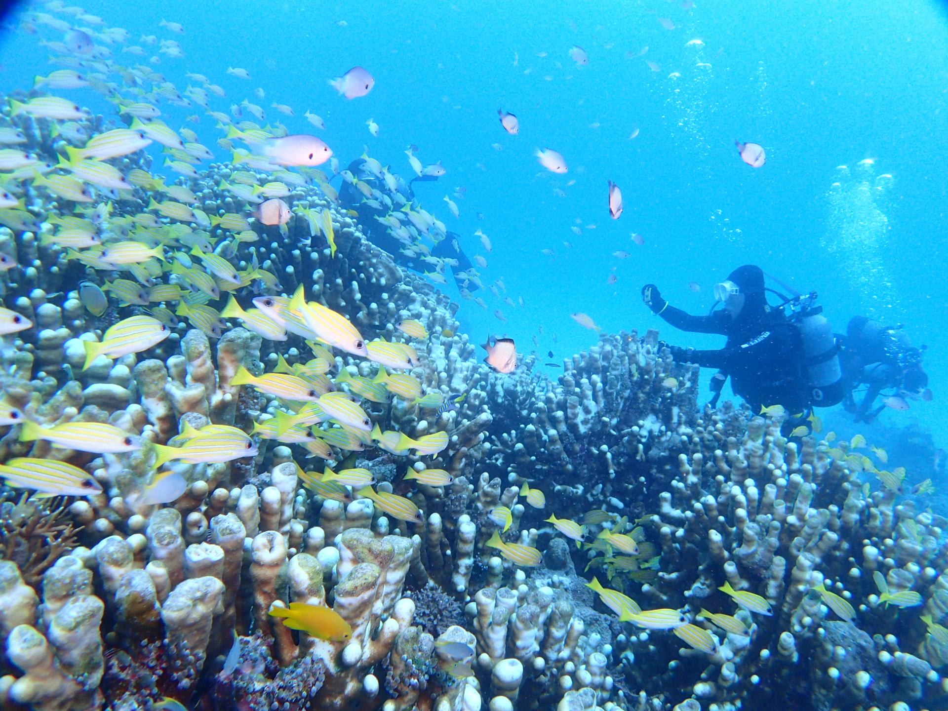 ダイビングのレクチャーもしっかりこなし、いざ!水中へぶくぶく~.。o○