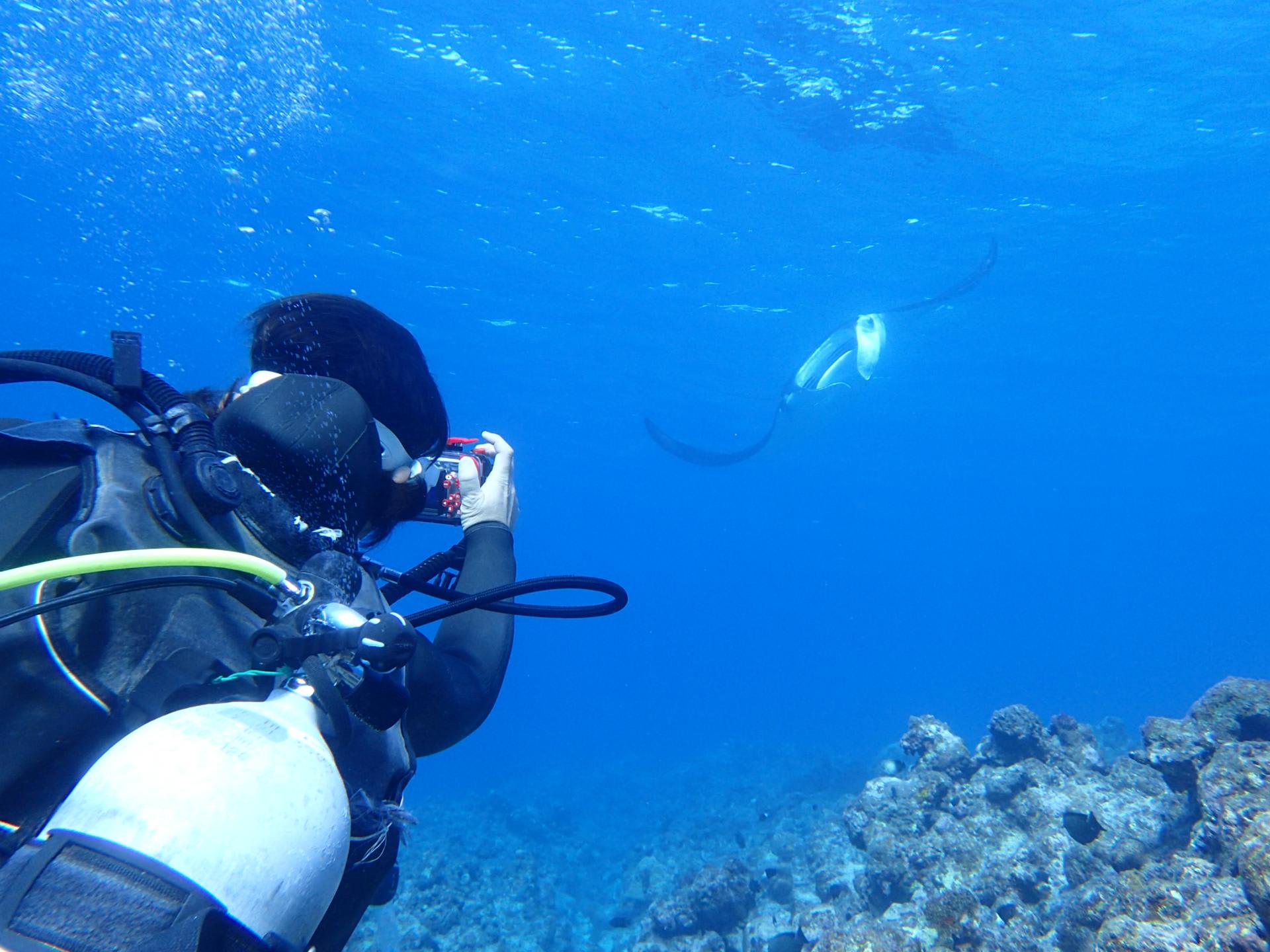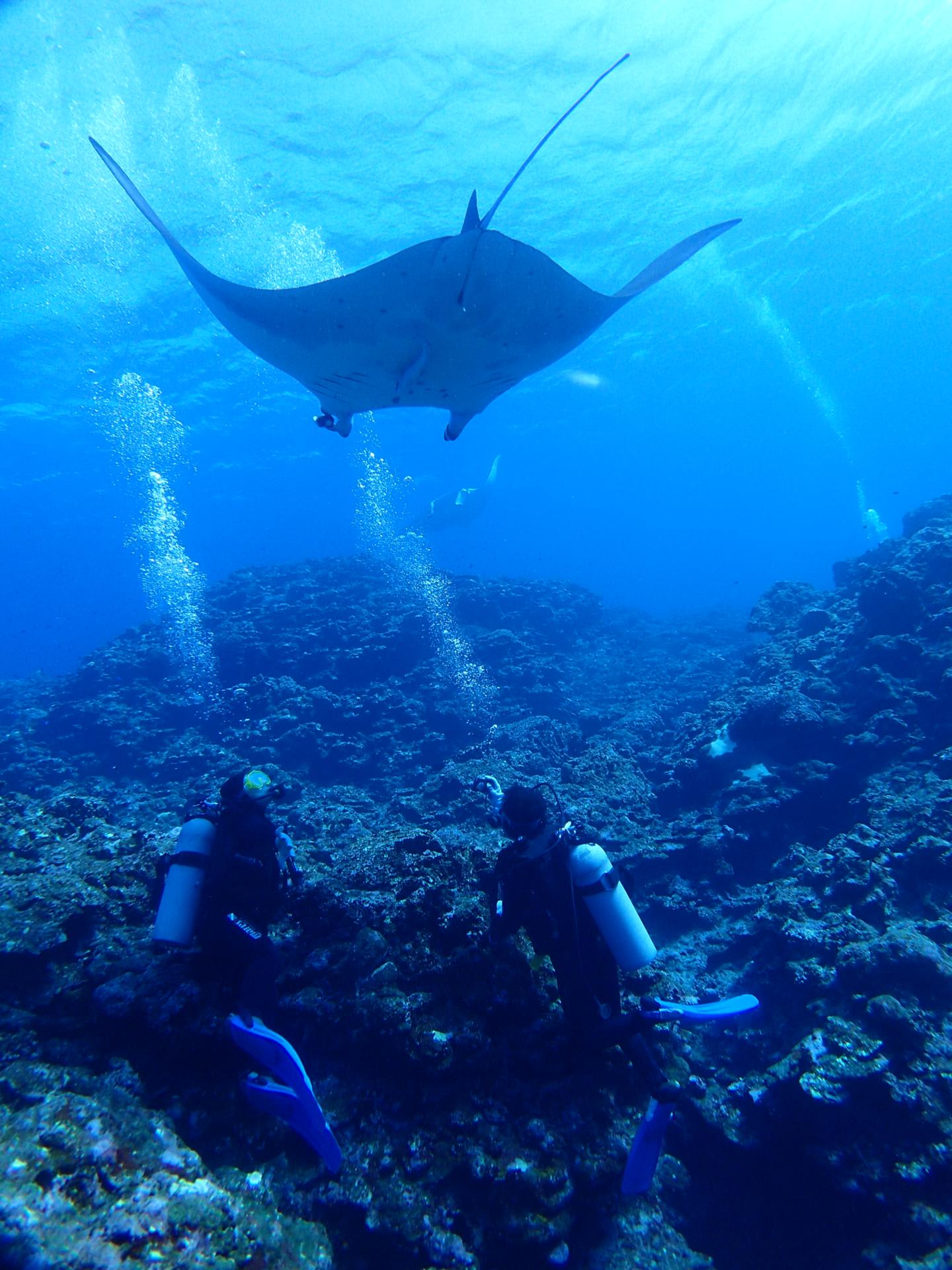 潜り始めは1匹 あとから追加で 計4匹!!!大きなマンタが大きな感動を運んできてくれました(V)o¥o(V)