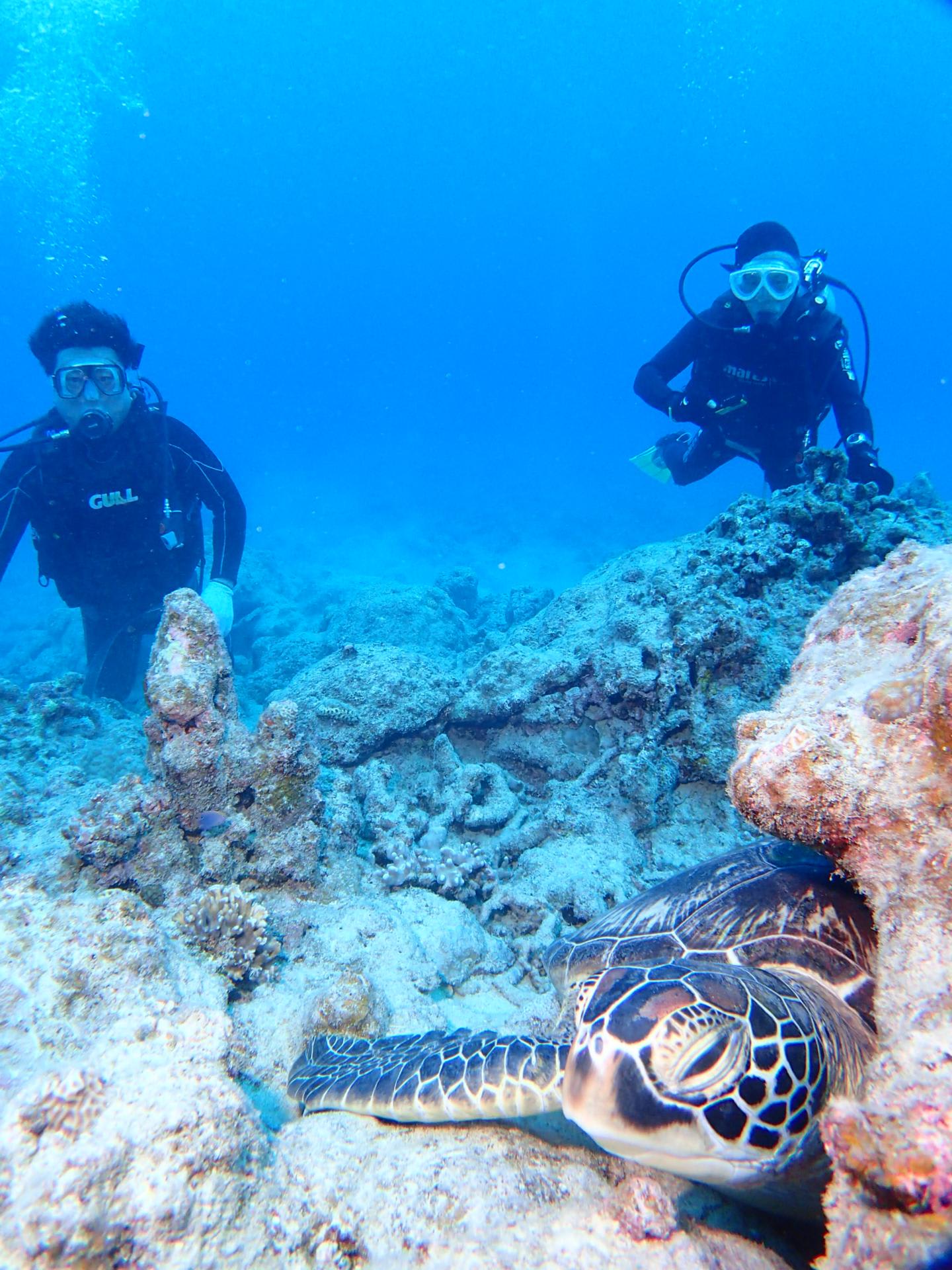 1本目は朝寝坊のアオウミガメにモーニングコールしにいきました(*^^*)