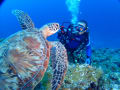 最後は黒島にもどり、カメさんと遊んだり、水温の2℃位低いトンネルをくぐったり