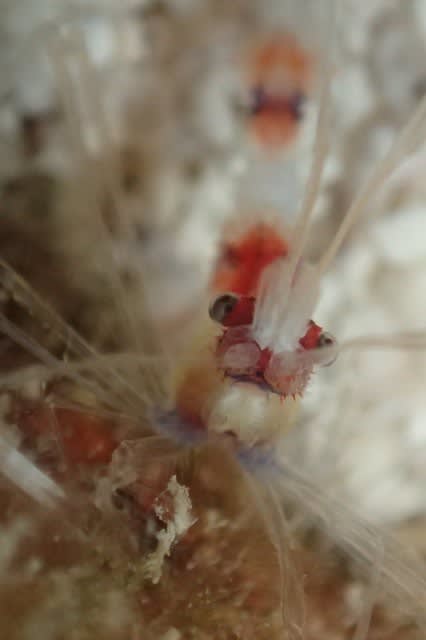 なんだか猫ちゃんに見えなくもないオトヒメエビ正面顔やうふふと笑うシボリキンチャクフグもキュートです❤