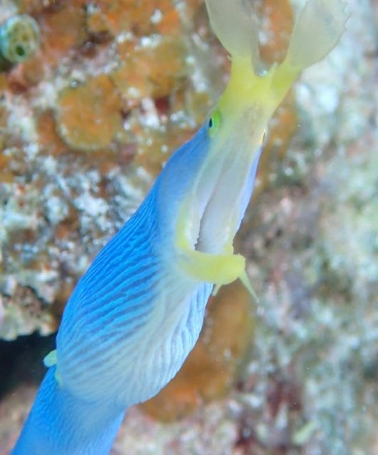 元気なハナヒゲウツボさん 同じ根にはスカシテンジクダイやキンメモドキの稚魚が増えてきてますね~