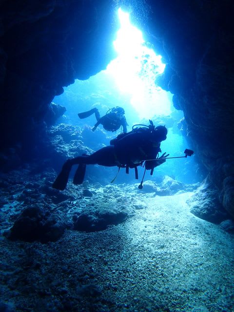 アーチの中とっても寒い!!!冷たい潮が流れ込んで水温が21℃!!!!