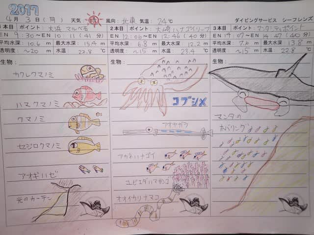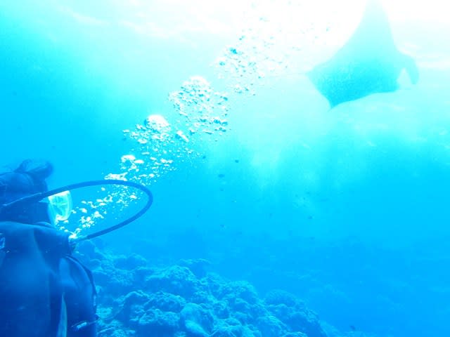 シーフレンズでは、もう定番(?!) のマンタを見てーー