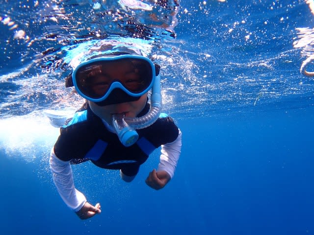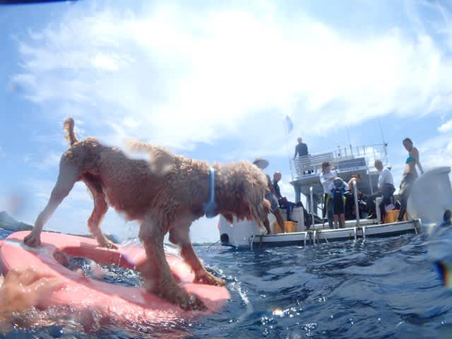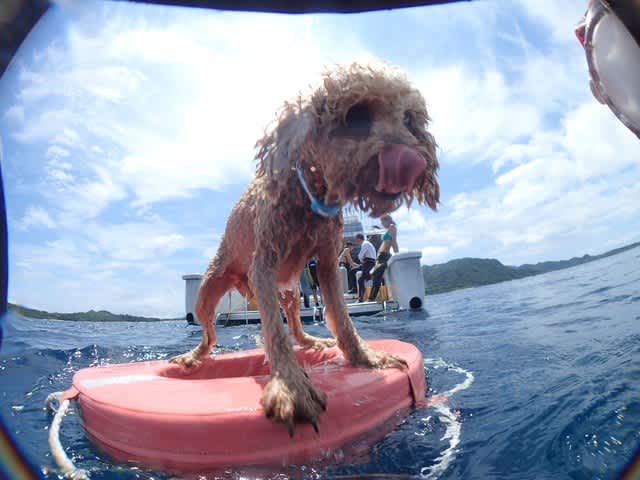 今日もあっちいなぁm(。≧Д≦。)mポイント:石崎マンタスクランブル 崎枝グルクンの根 御神崎エビ穴コンディション:東南東の風 波:1.5m 30℃ 水温:26℃ 透明度~25mはいどもでーす(* ̄ー ̄)きょうもシーフレチーム元気に潜ってきましたよ☀☀朝の準備中には雨がザーッと降りはしましたがその後は晴天(^○^)気温もグングン30℃まであがり湿度も高い!あっちっちーでしたが気持ちのいい一日となりました♪♪水中ものんびりと~を中心にゆるゆる遊んで 子供や看板犬ゴンちゃんも青い空青い海にテンションMAXで泳ぎまくり!! 少人数でしたが ニコニコ笑顔たっぷりの一日でしたヾ(@゜▽゜@)ノ