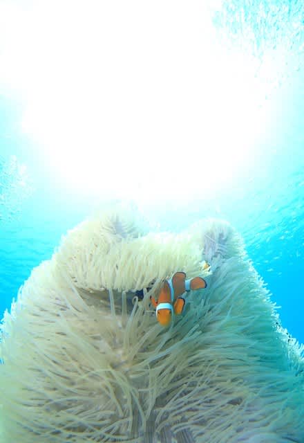 そうしてたどり着いた水中の世界には、ピンクぅ~なクマノミちゃんや もりもりのサンゴ山
