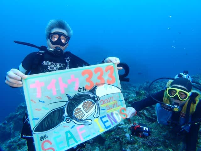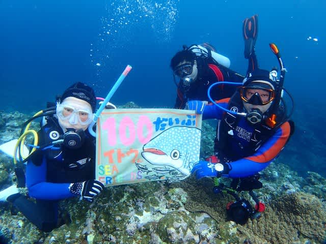 連日ご利用のイトウさん!100ダイブ達成でーす!!記念フラッグでお祝いしてきました~❤❤