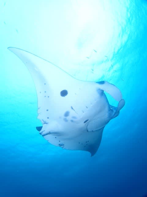 さぁー水中の方は、メインのに行くとマンタさん1枚すでにホバリングしててくれて