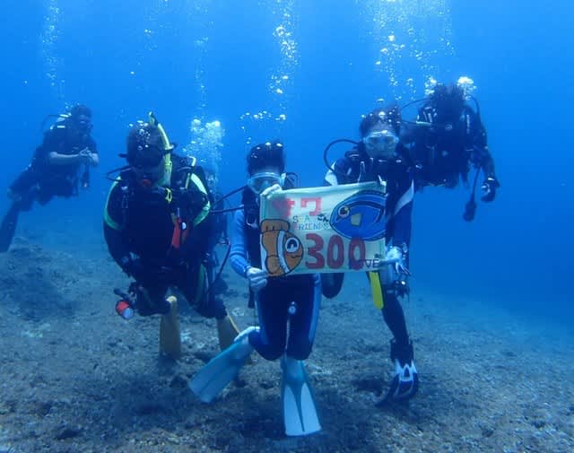 ここでリピーターのSAWAさん300ダイブ達成でーす(^O^)/