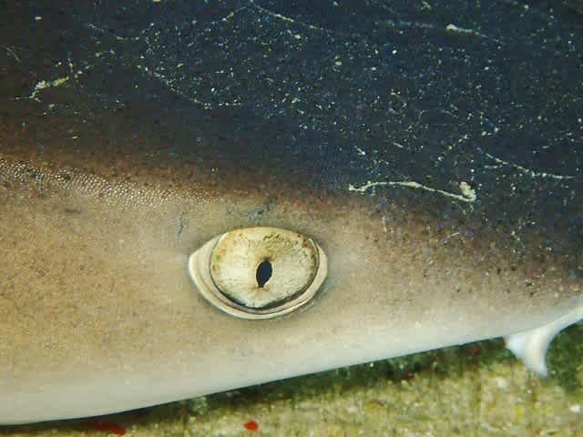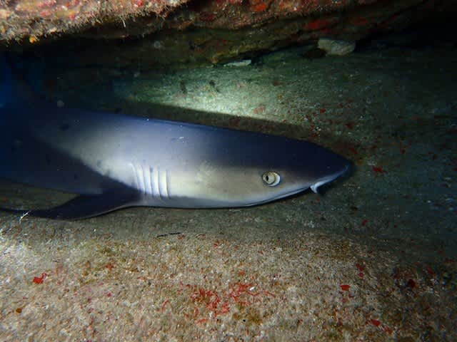 ホワイトチップシャークがあちこちうろうろしたり、したの方にはマダラエイが寝てたり、