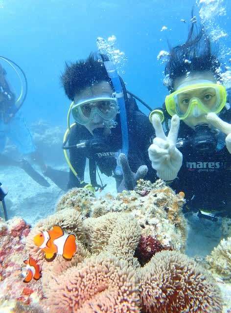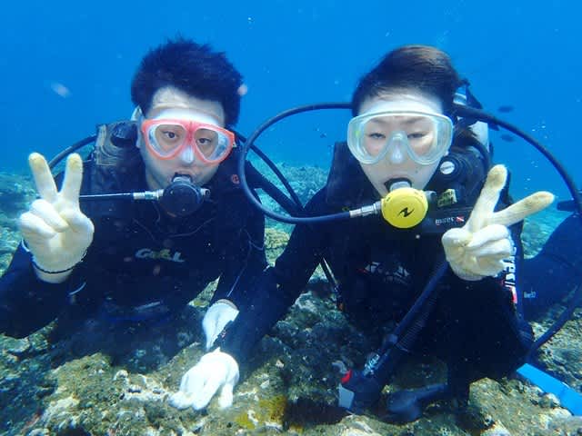 めっちゃ良い天気のなか新婚さんが体験ダイビングに来てくれましたー❤