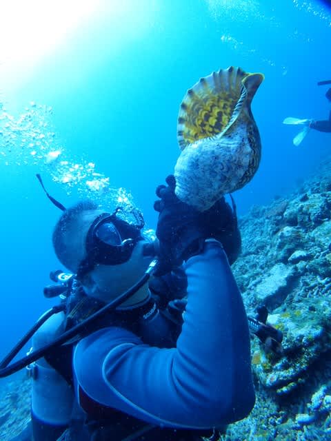コンディション:南の風やや強く 波:2m 気温:32℃ 水温:30℃ 透明度~25m