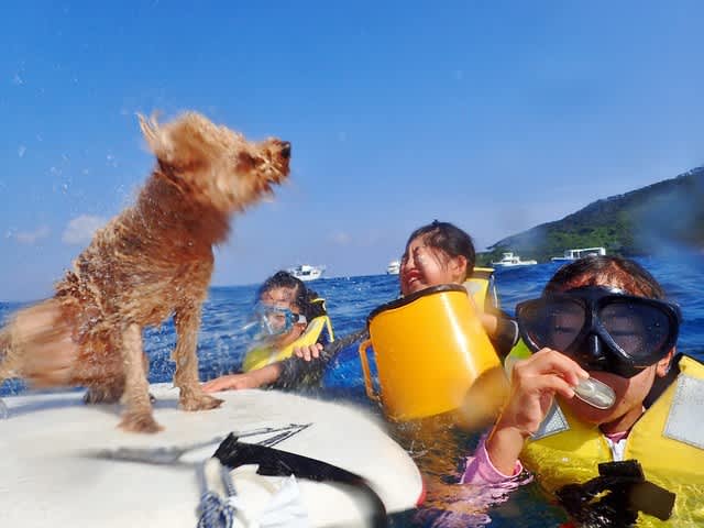 ゴンちゃん(犬)とも仲良くスノーケル!