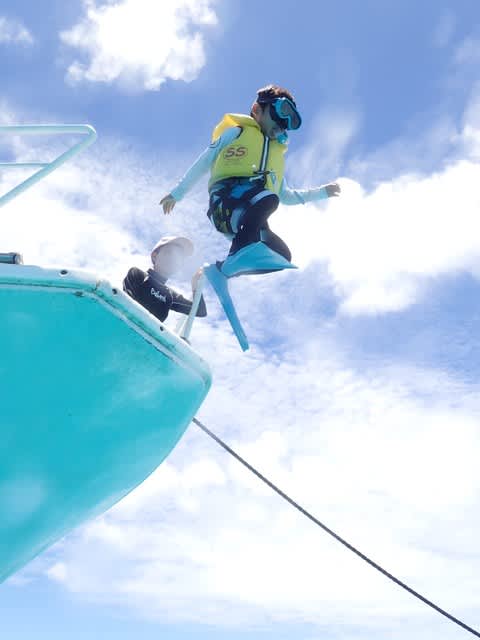 昼休みには、皆でスノーケル大会&飛び込み大会でしたよ。