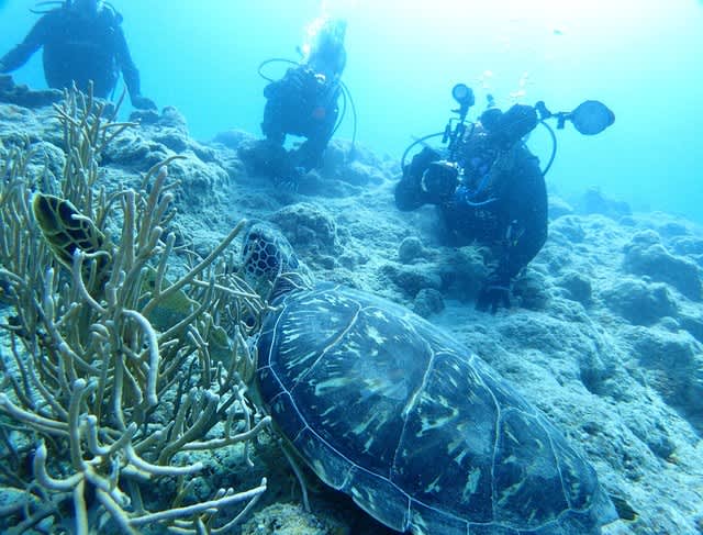 グータラアオウミガメに大接近!!!!なかなかラッキーでしたねぇ(^^)v