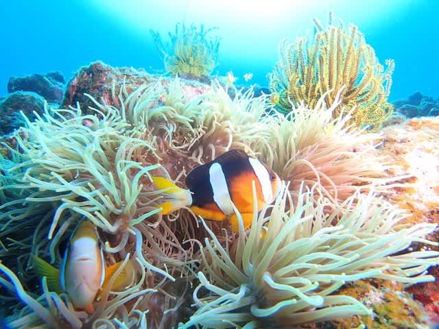 おこさまたっぷりのクマノミもウミシダと太陽バックでパシャリ☀☀