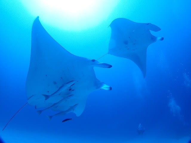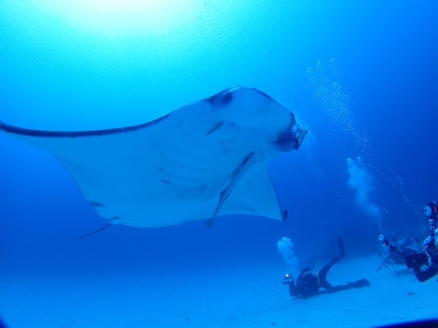 白く目映い水底に着くと、まってました!!と言わんばかりにマンタが突撃シテキターーー(><*)