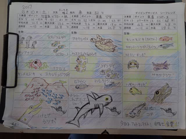 コンディション:南の風 波2m 気温32℃ 水温27℃ 透明度~25m