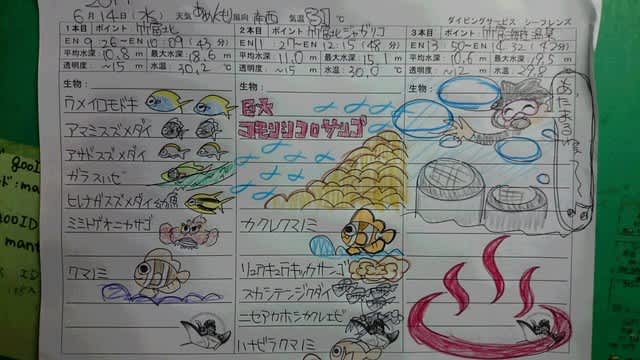 コンディション:南西の風強く 波:3m 気温31℃ 水温30℃ 透明度~15m
