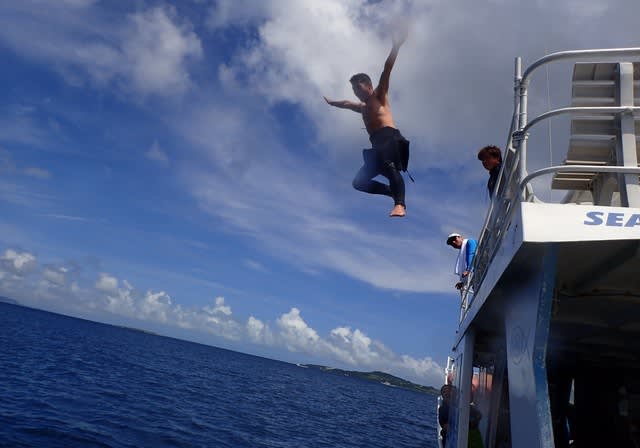 続々潜っていくファンダイバーの方達を見てイーメジトレーニングをしていただいて、レッツダイビング!!