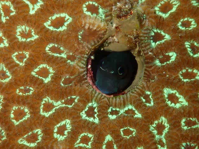 屋良部アーチでは、穴の中のウスモモテンジクダイやハタンポの数が増えてきていて、賑やかになってました♪