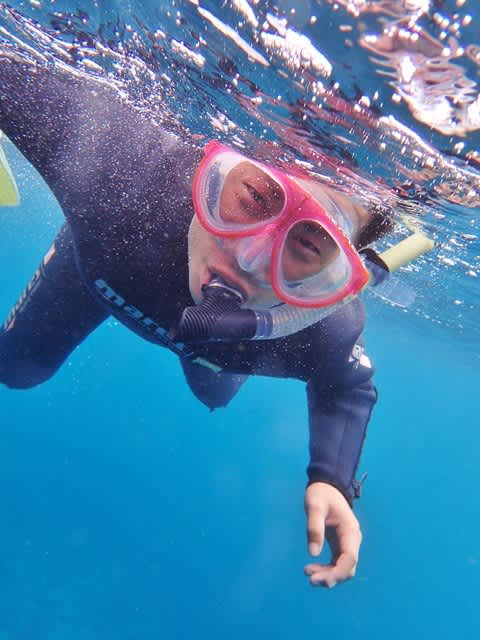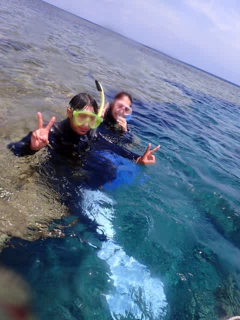 まずは嘉弥真島の北側でスノーケリングで水慣れしていただきました♪