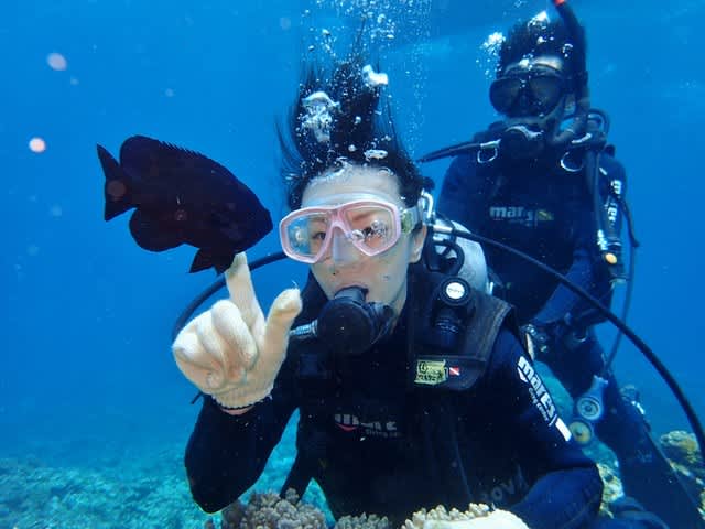 ダイビングはお魚との距離が近くてスノーケリングとは違う感動がありますね!