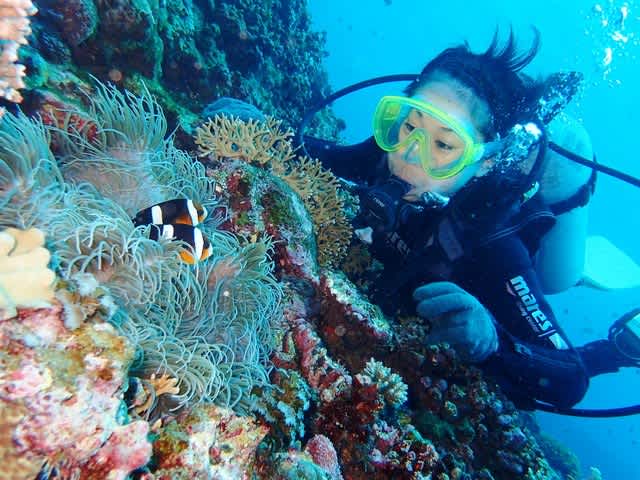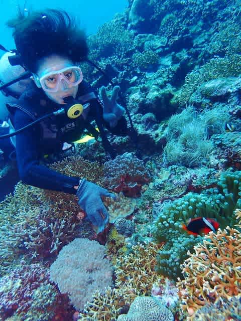 スノーケリングよりも、ダイビングの方がタンクから空気が吸える安心感があって意外と楽チンなんですよね♪
