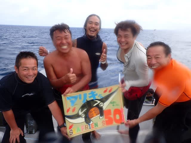 ここでリピーターのアリキさん!50ダイブ達成でぇす(●^o^●)フラッグでお祝いしてきましたよ!!